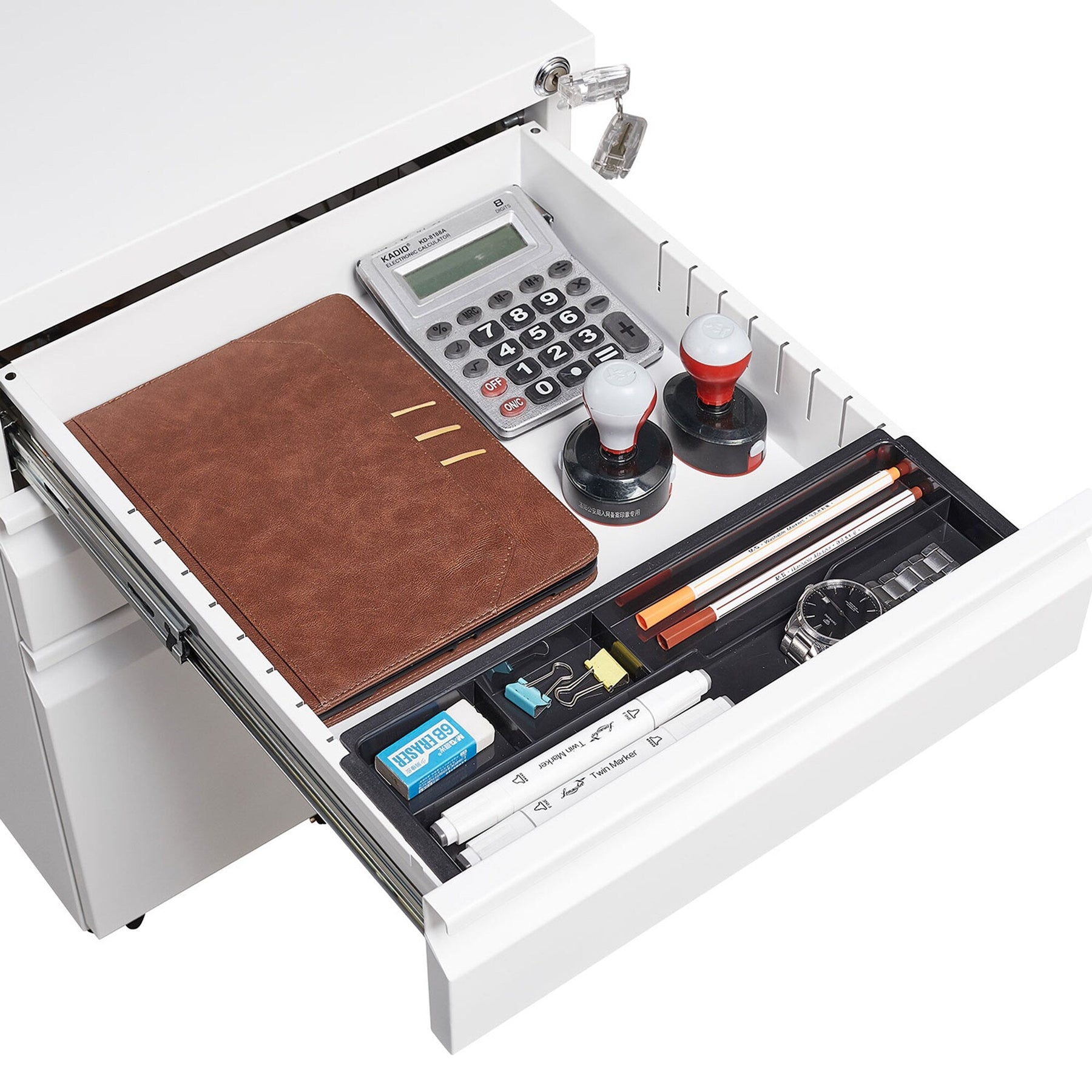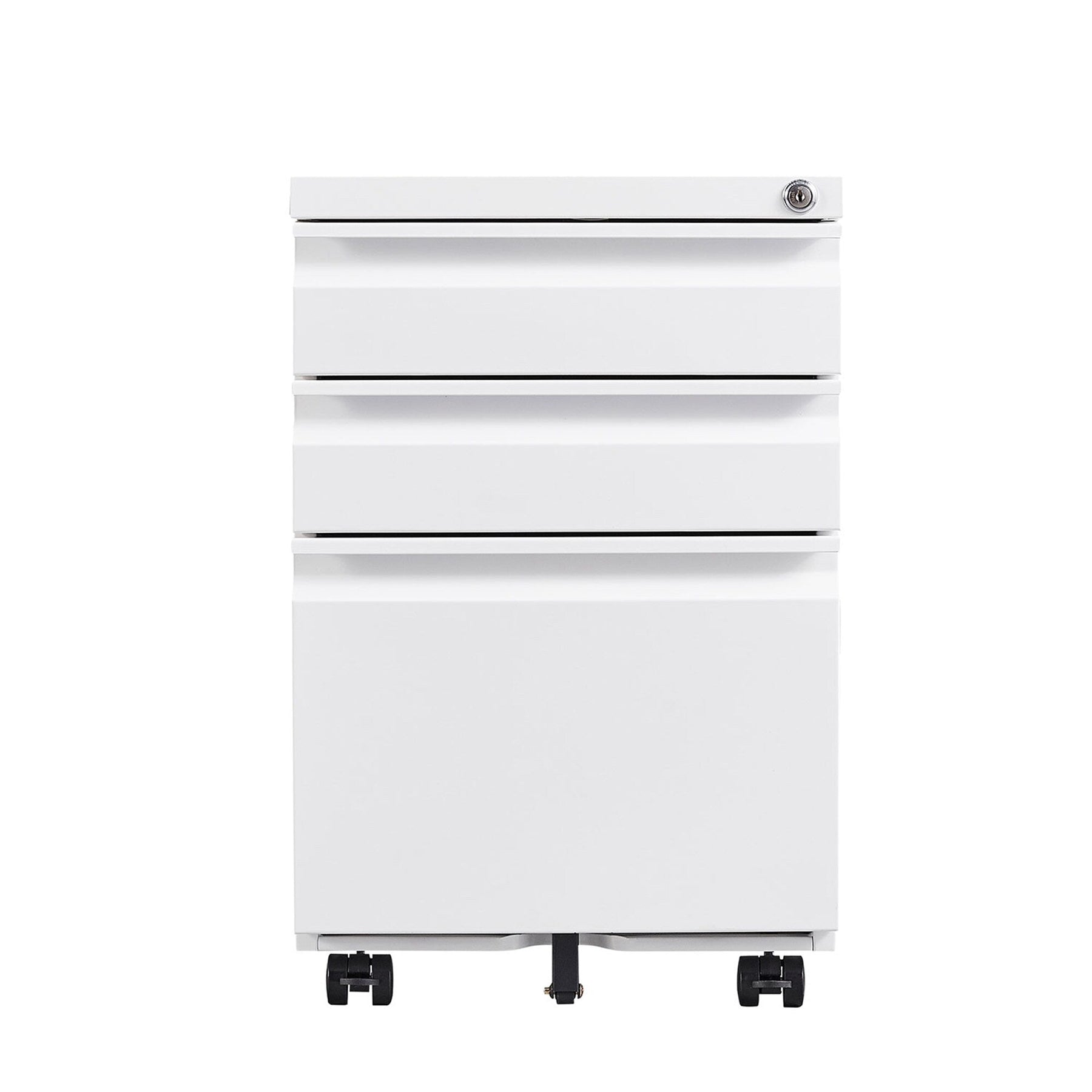 Secure Storage: Features a lock with two keys, securing all three drawers for peace of mind.
