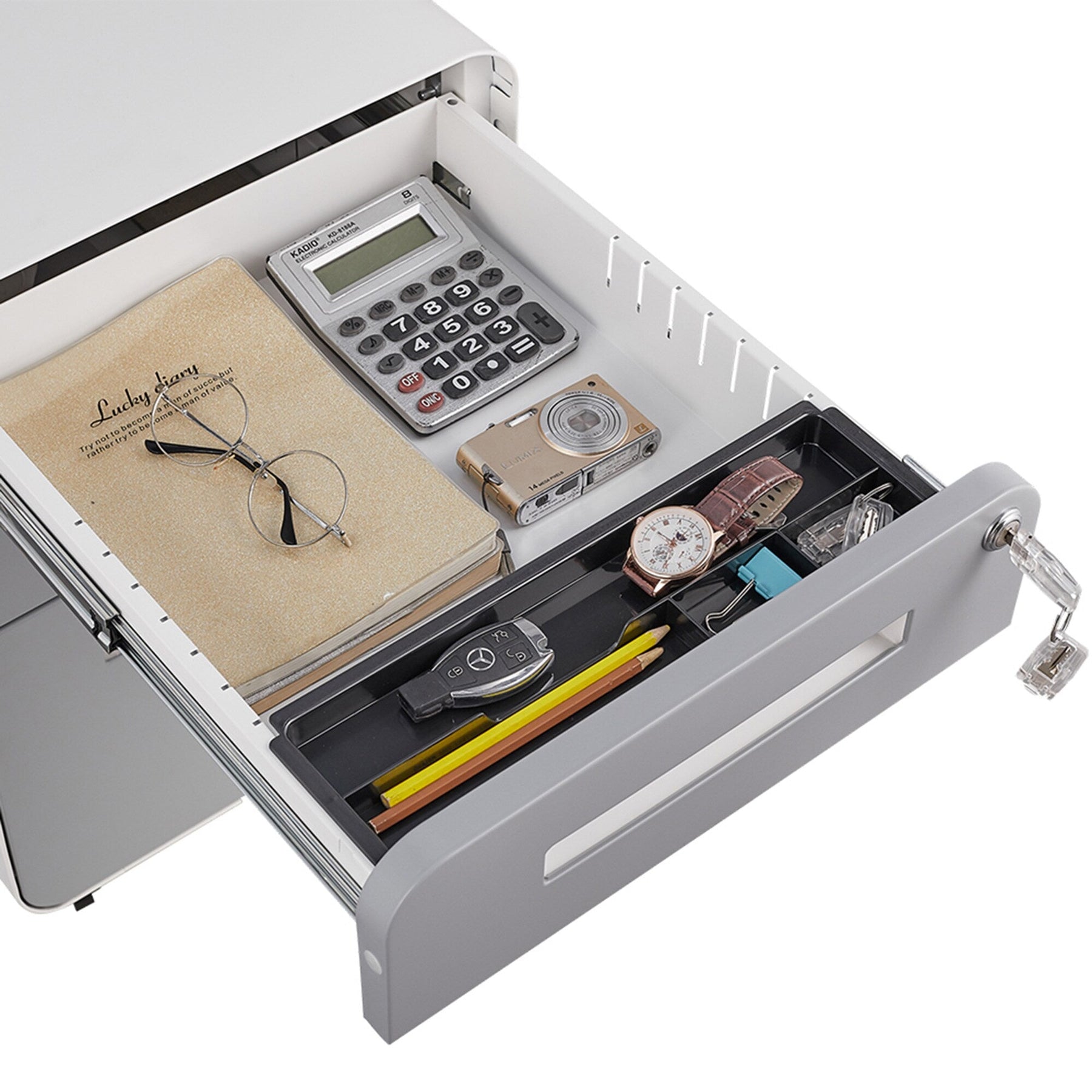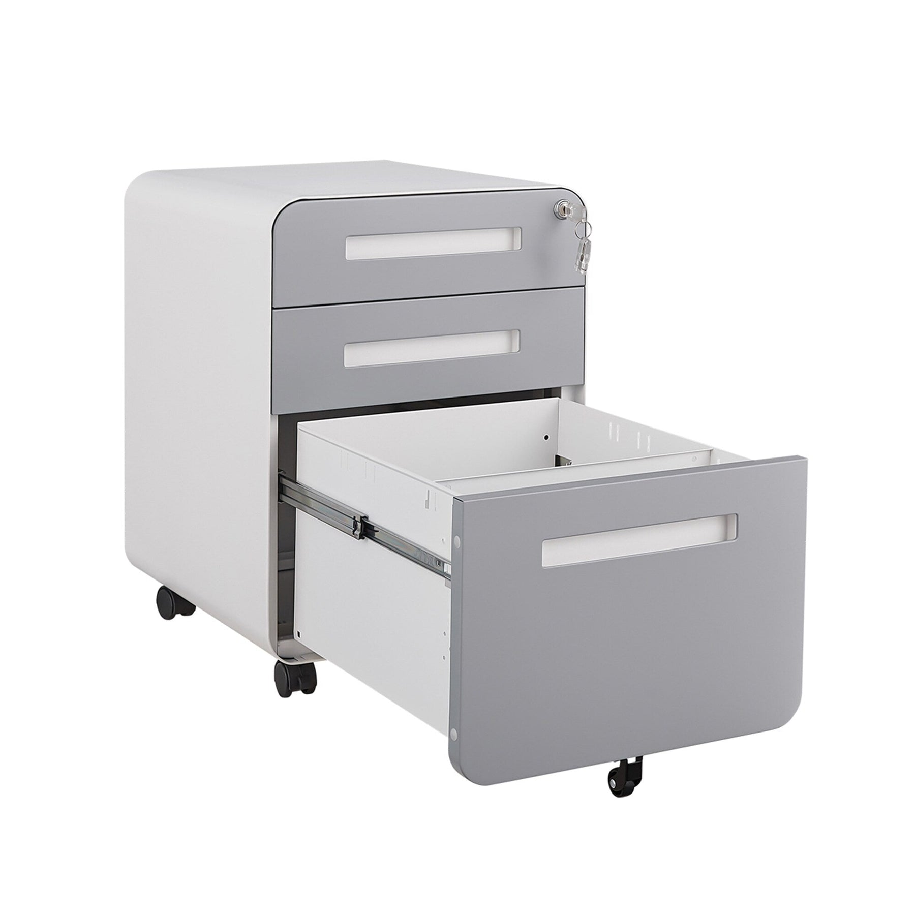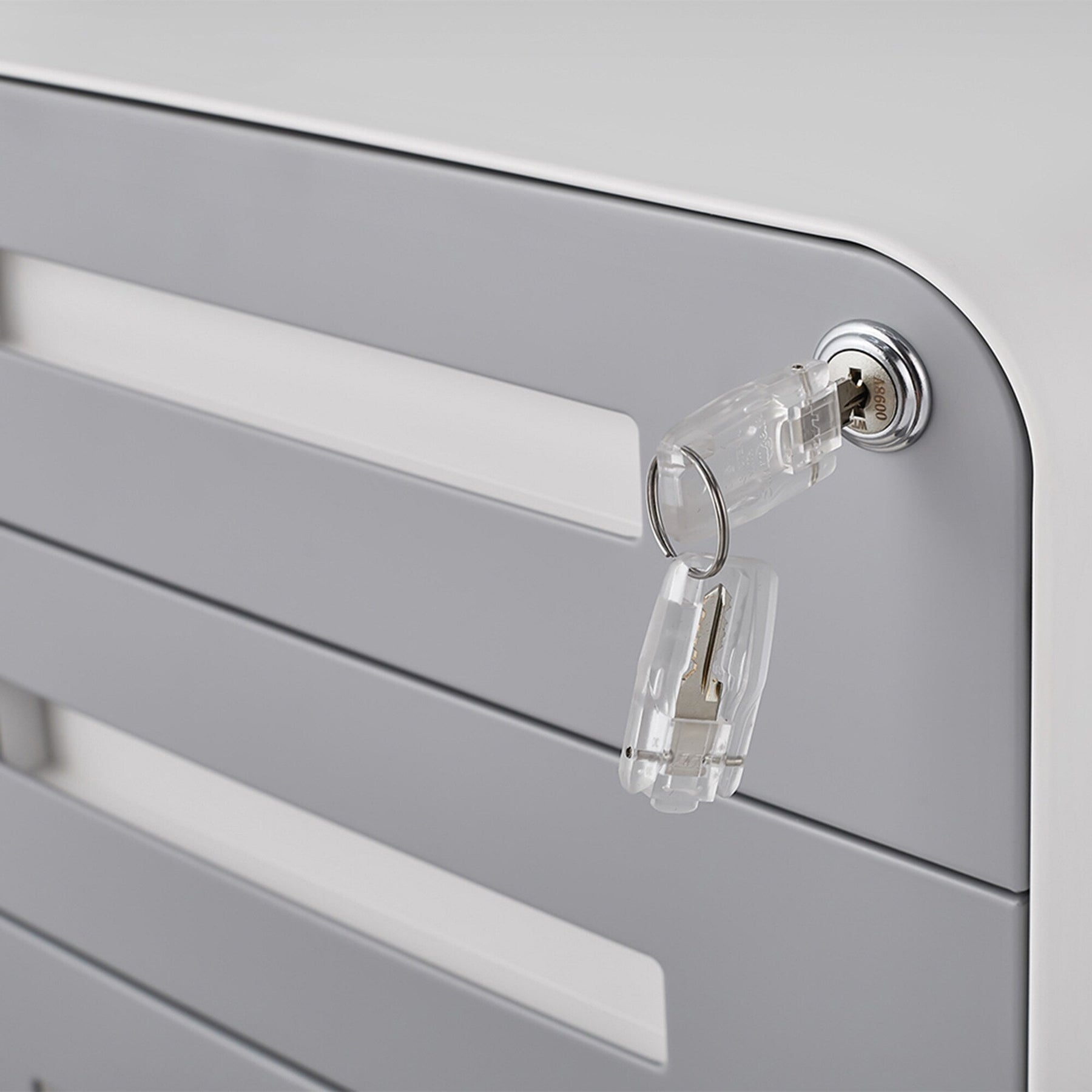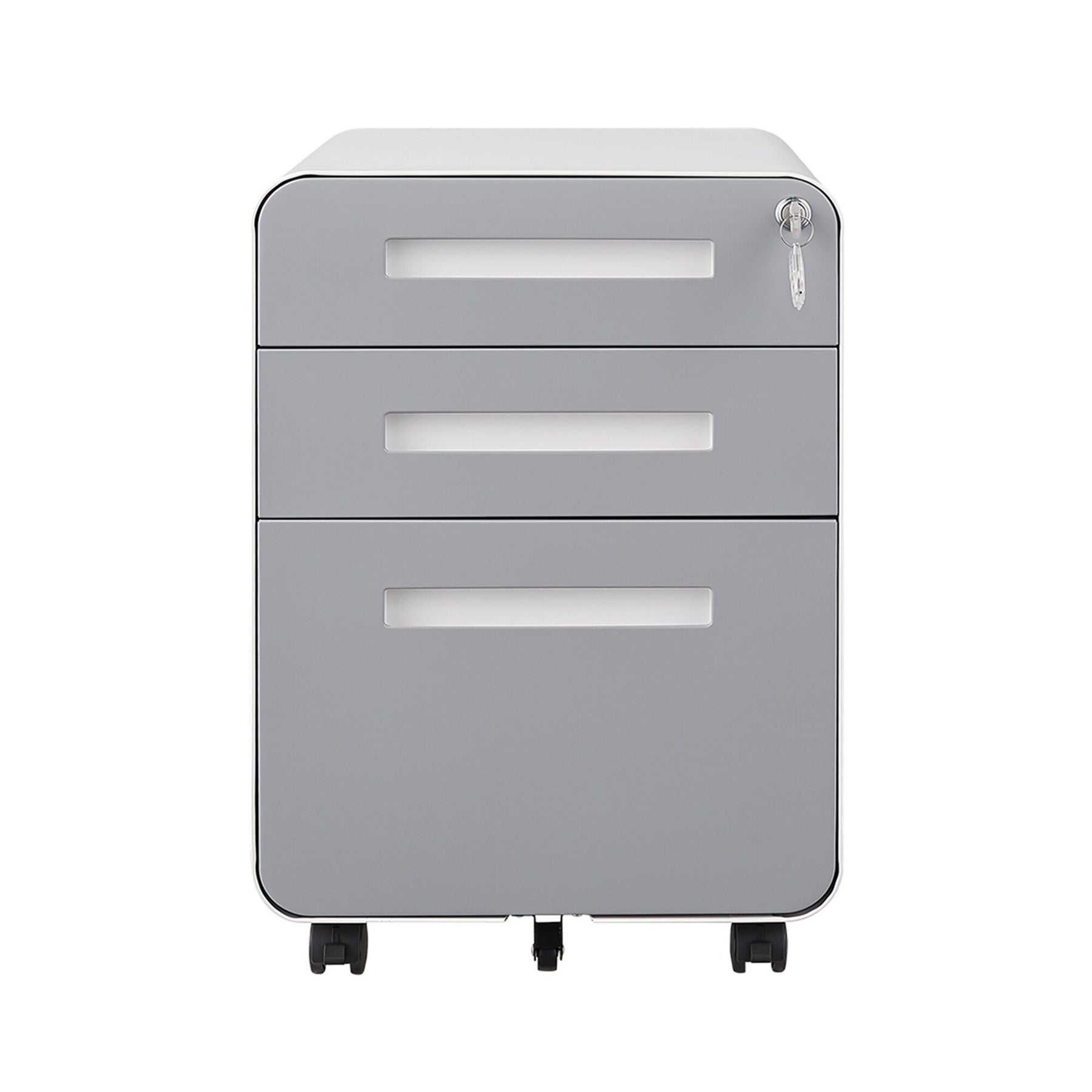 Locking System: One lock secures all three drawers with two keys provided.