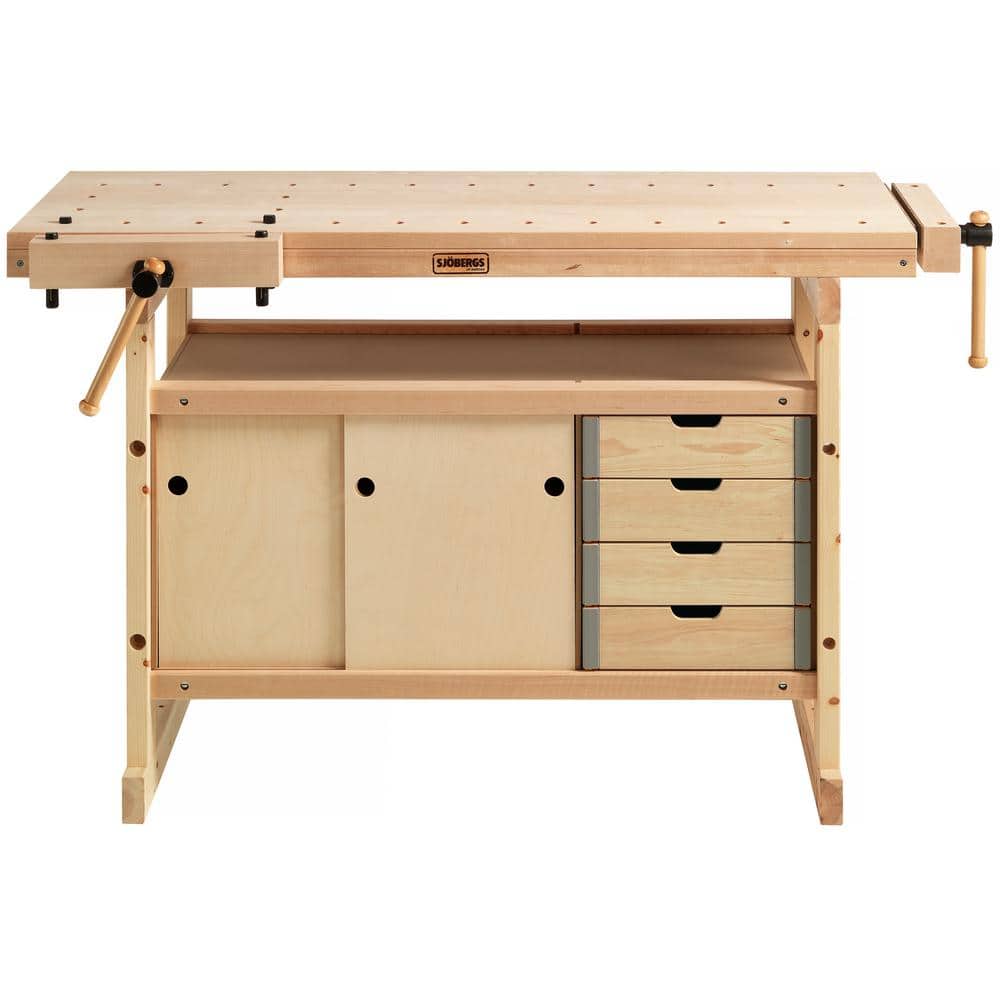 Streamline your workshop with the Sjobergs Nordic Plus Workbench Storage Cabinet, expertly crafted from Nordic Birch for lasting durability. This elegant, Swedish-made cabinet includes four spacious drawers and versatile cupboard space, keeping your tools and supplies neatly organized and easily accessible.