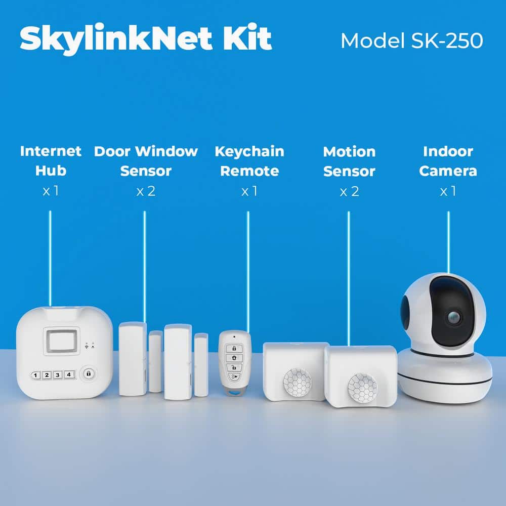 Elevate your home security with the SkyLink Wireless Security System, a comprehensive suite featuring a camera and alarm setup that's compatible with Alexa. Effortlessly monitor and control your home remotely, and expand the system with up to 100 devices for maximum coverage. Enjoy the convenience of DIY installation and zero monthly fees for a smarter, more secure home.