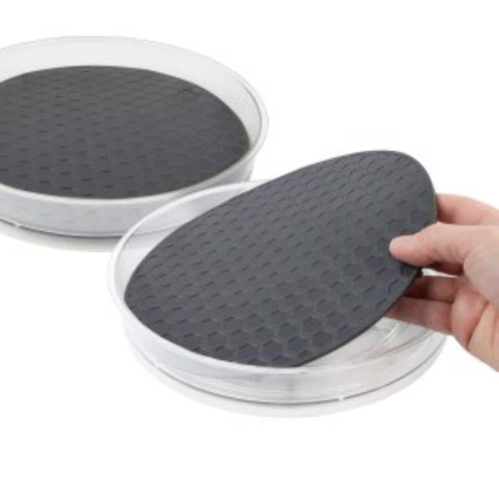 A: The antislip grip ensures the Lazy Susan stays securely in place and prevents items from shifting while rotating.