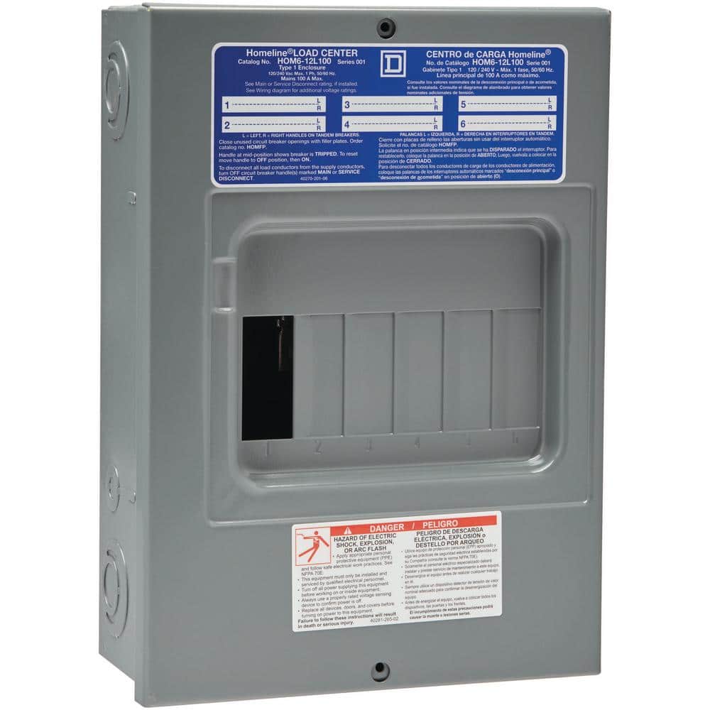 Square D Homeline 100 Amp 6-Space 12-Circuit Indoor Surface Mount Main Lug Load Center with Cover