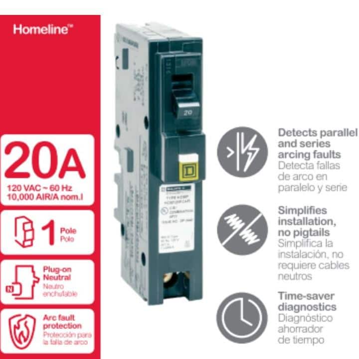 Square D Homeline 20 Amp Arc Fault Circuit Breaker