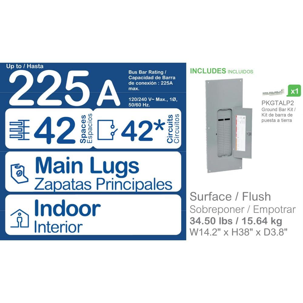 Square D QO 225 Amp 42-Space 42-Circuit Indoor Main Lug Plug-On Neutral Load Center with Cover, Ground Bar