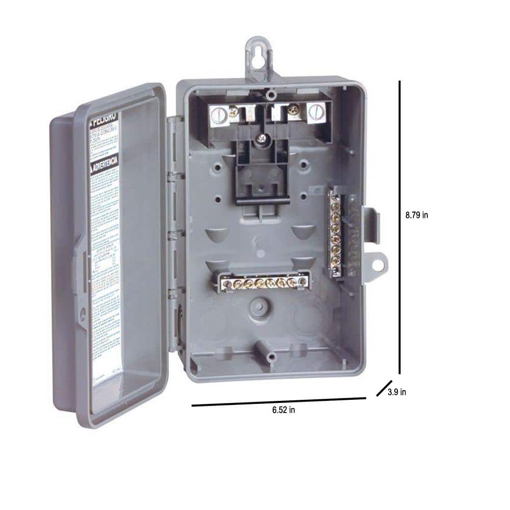 • Outdoor Use: Rated for rainproof outdoor conditions with a durable non-metallic enclosure.