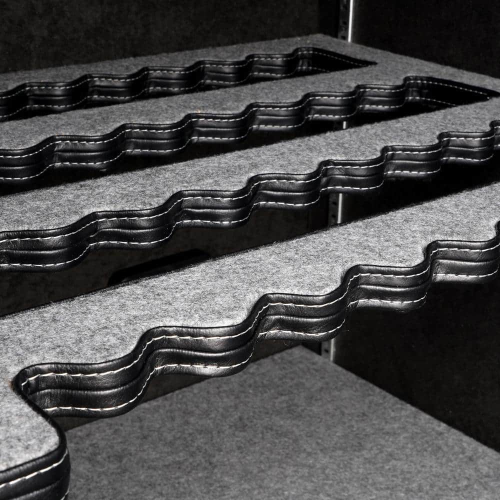 • Flexible Interior: Includes movable shelves and a luxurious lining to store firearms, documents, and other valuables safely and stylishly.