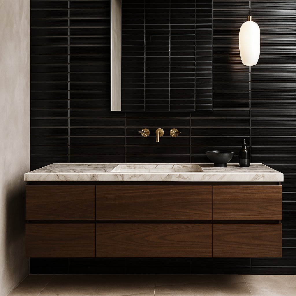 Transform your space with the luxurious Stacy Garcia ArtBlock Fluted Nero tile—order now to elevate your design.