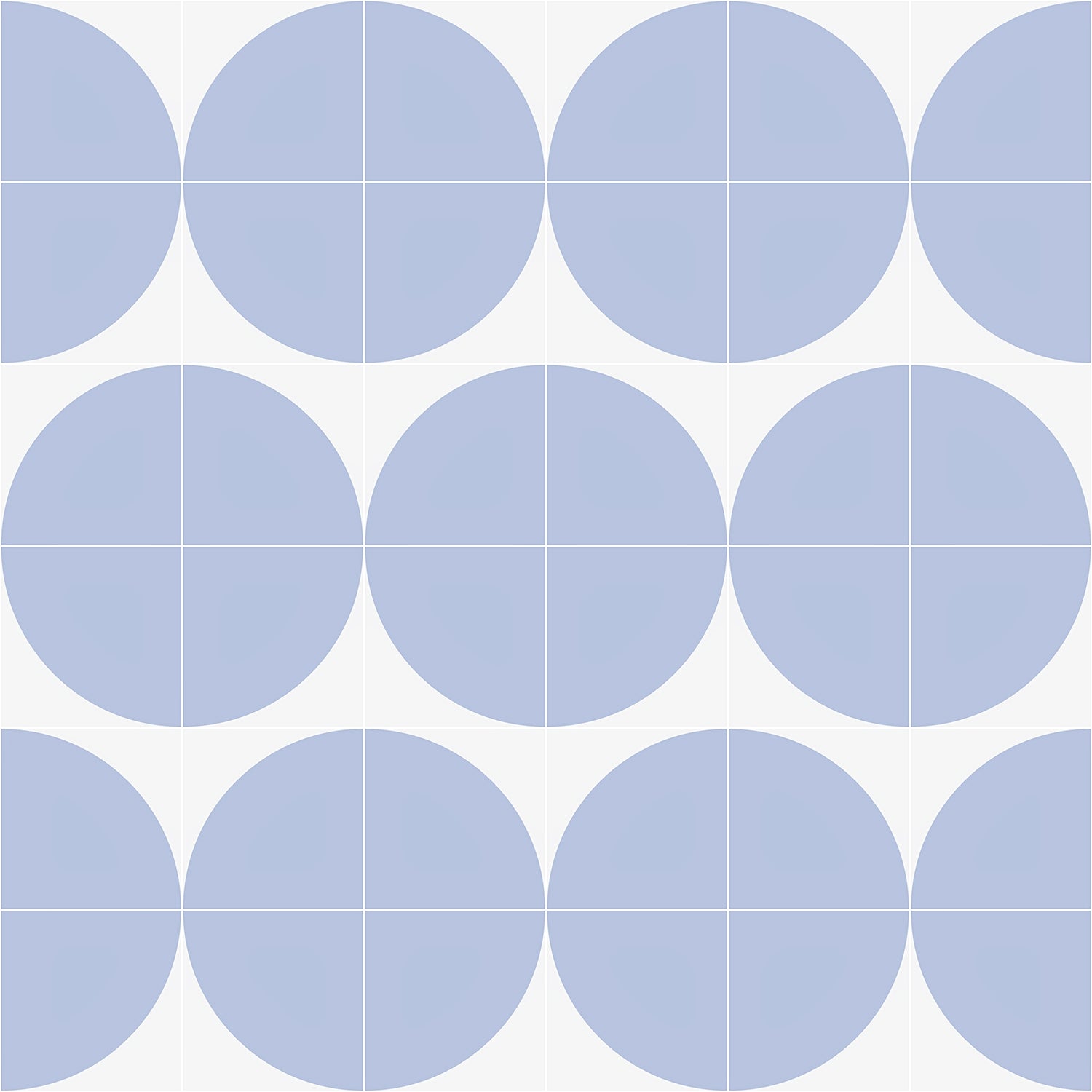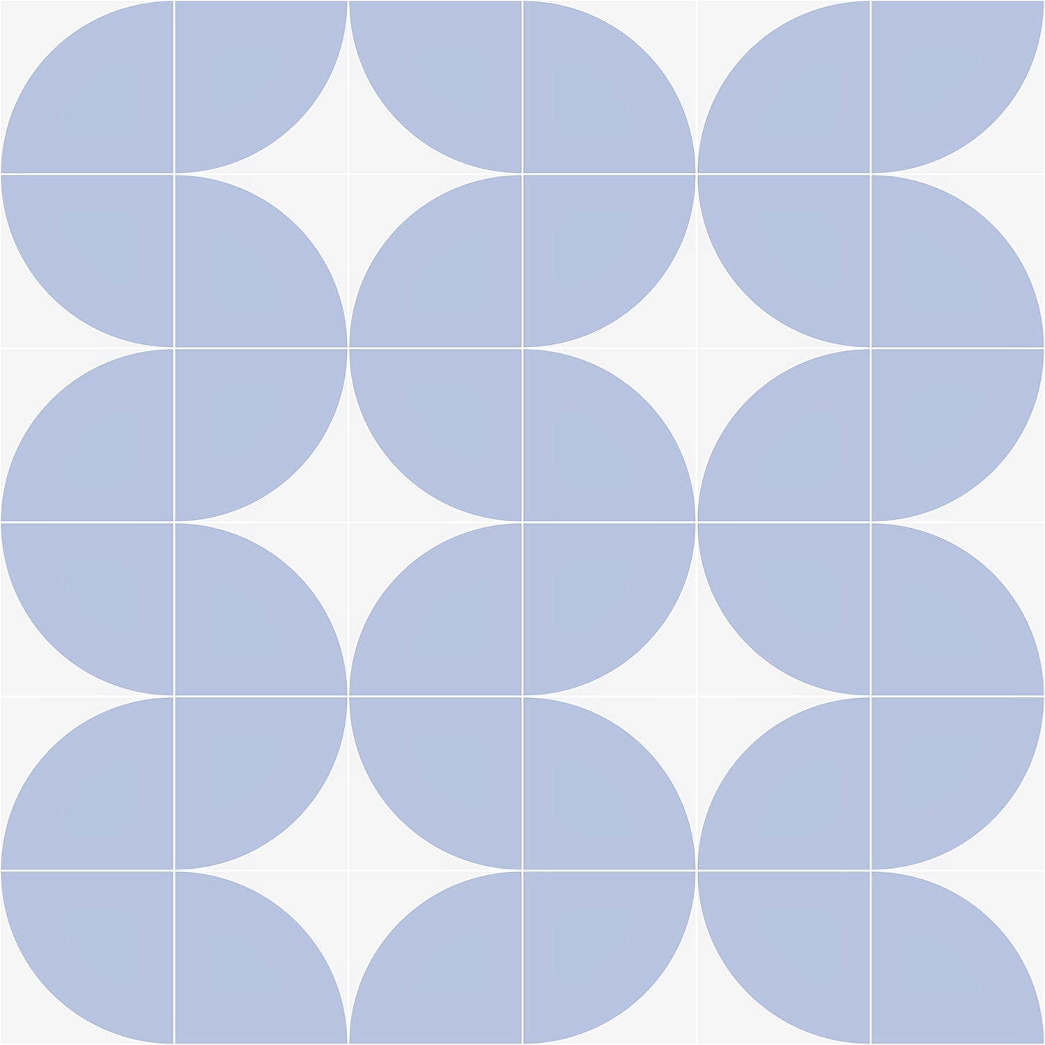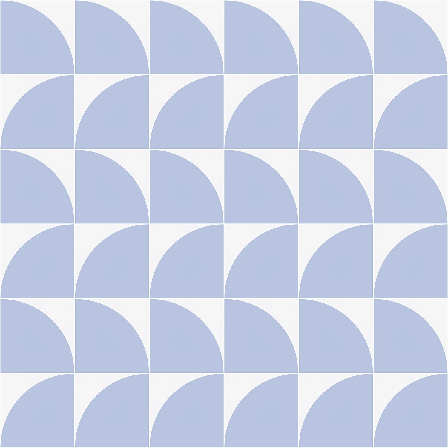 The Maddox Deco Azul 8x8 Matte Porcelain Tile by Stacy Garcia features a unique semicircle design in soft blue tones, offering versatile installation options for walls and floors. Sustainably manufactured in Spain, this tile combines modern aesthetics with eco-friendly practices.
