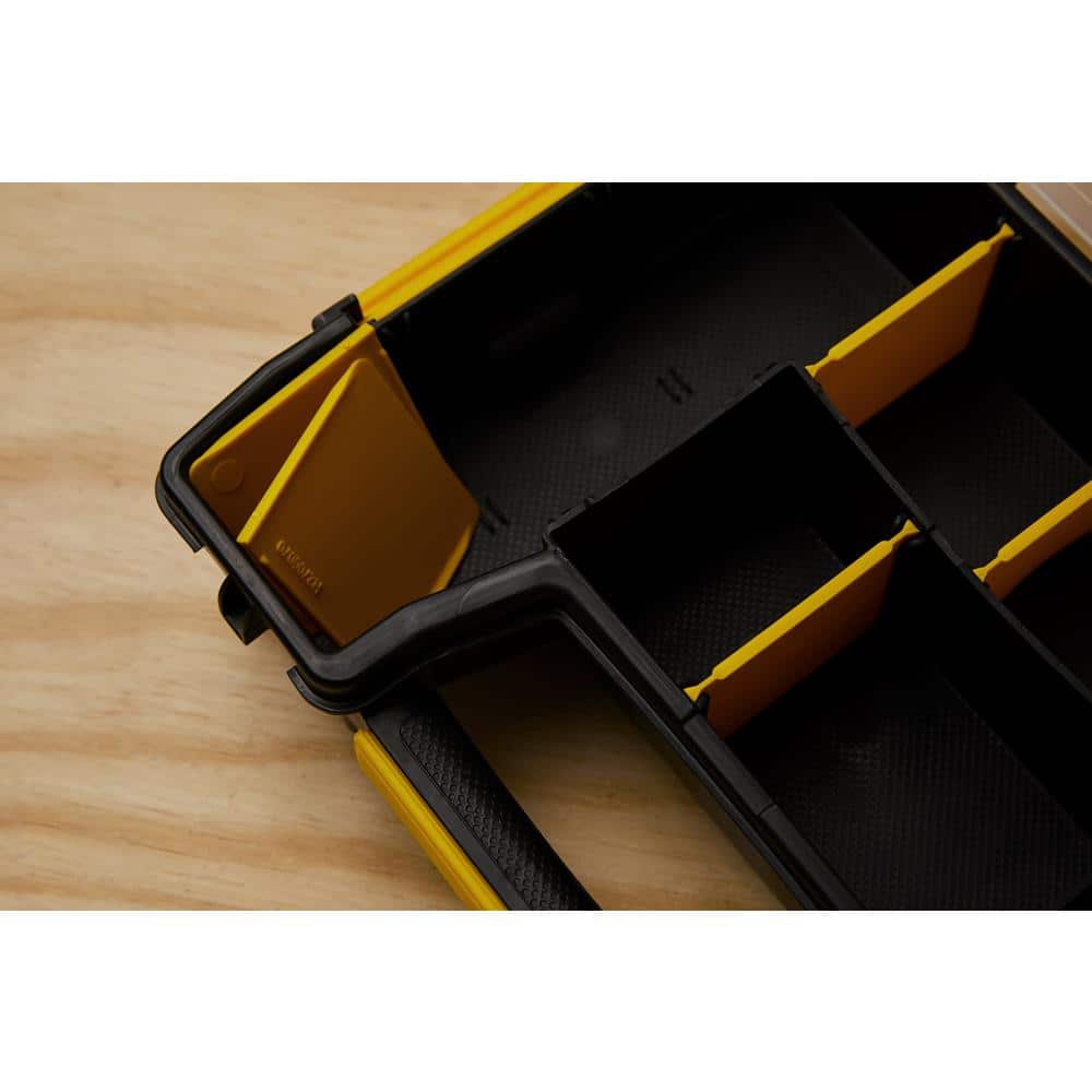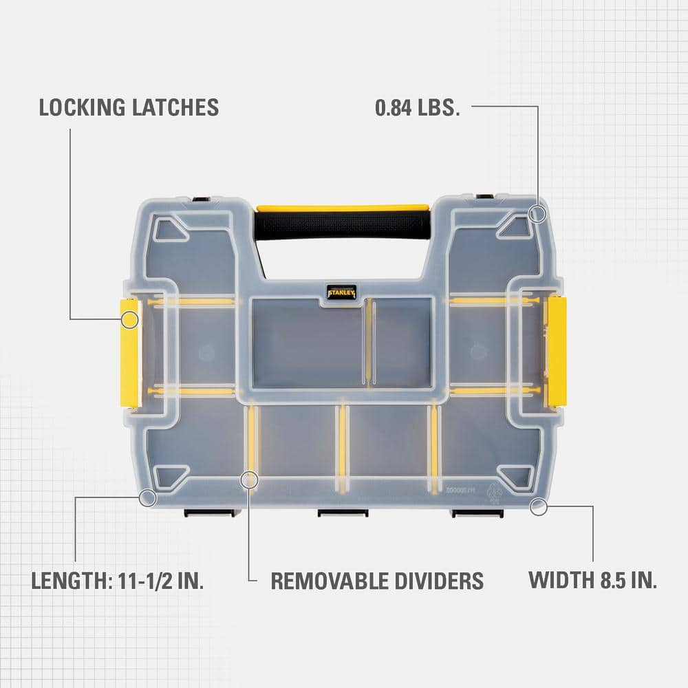 The Stanley SoftMaster 12-Compartment Small Parts Organizer is designed to simplify storing and transporting tools and hardware. Featuring innovative locking latches, a design that prevents mixing of contents, and removable dividers, this organizer is perfect for professionals and DIY enthusiasts who need customizable and secure storage solutions.