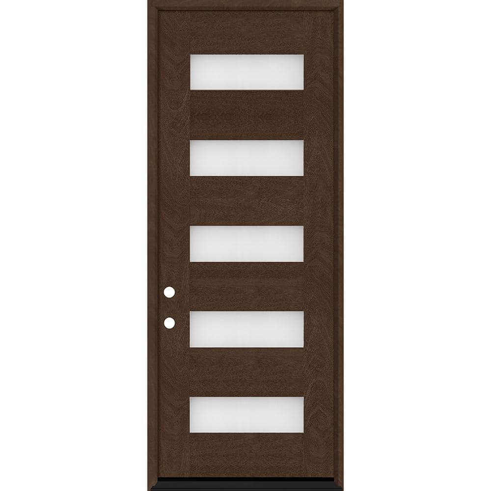 Steves & Sons Regency 36 in. W x 96 in. 5-Lite Modern Frosted Glass RHIS Hickory-Stained Fiberglass Prehung Front Door