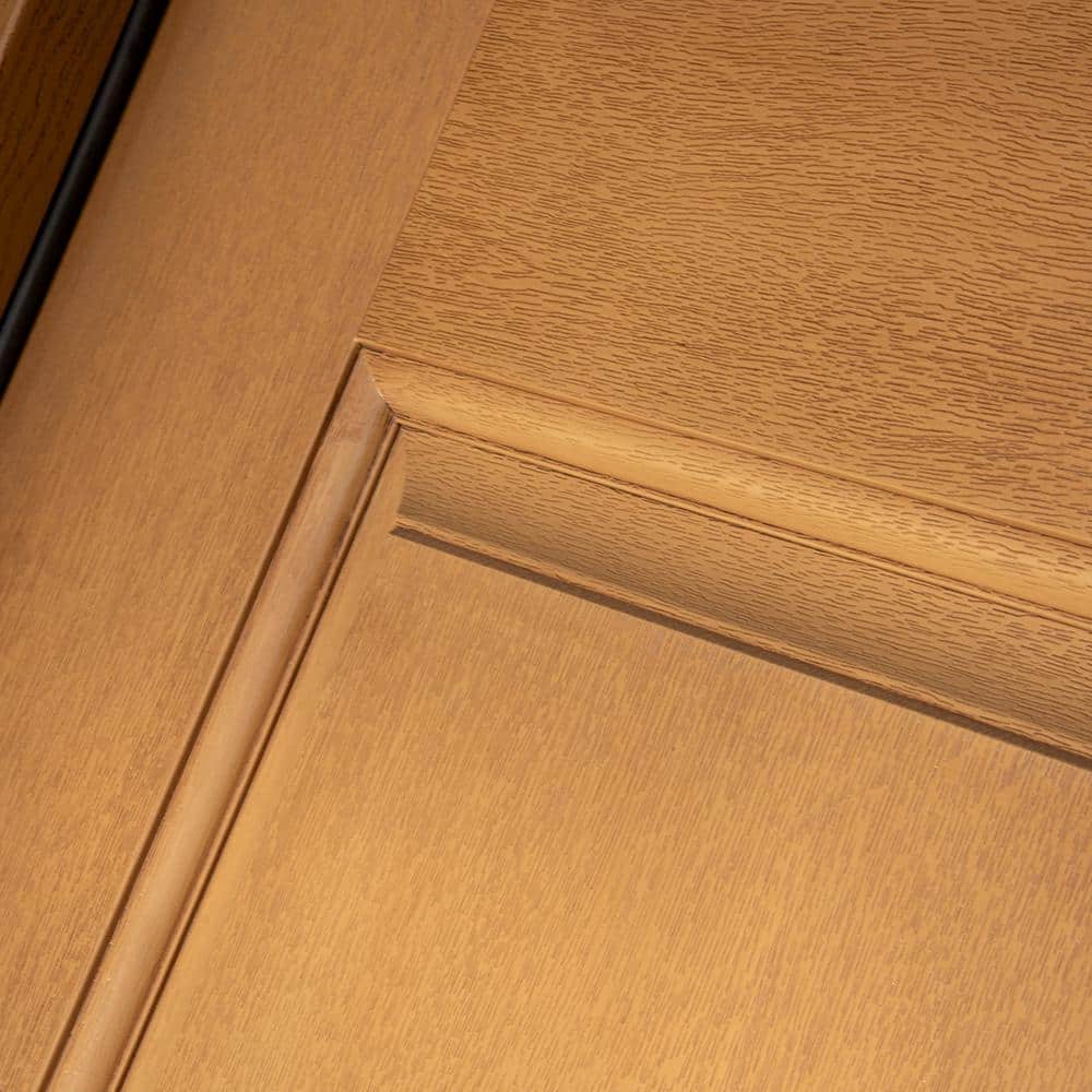 Rot-Free Composite System: Fiberglass door and composite stain-grade frame resist moisture and decay