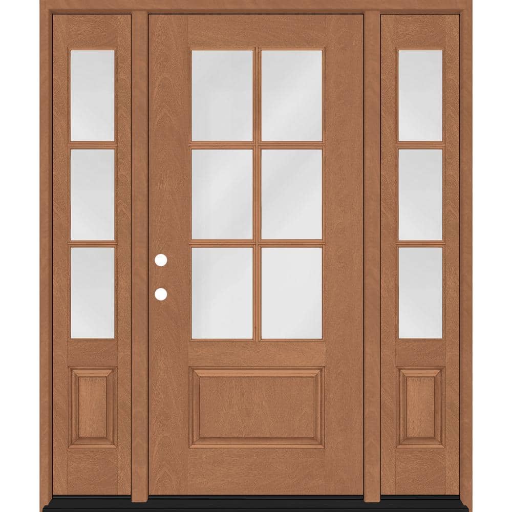 Regency Mahogany-Finish Fiberglass Prehung Front Door with Double 12 in. Sidelites