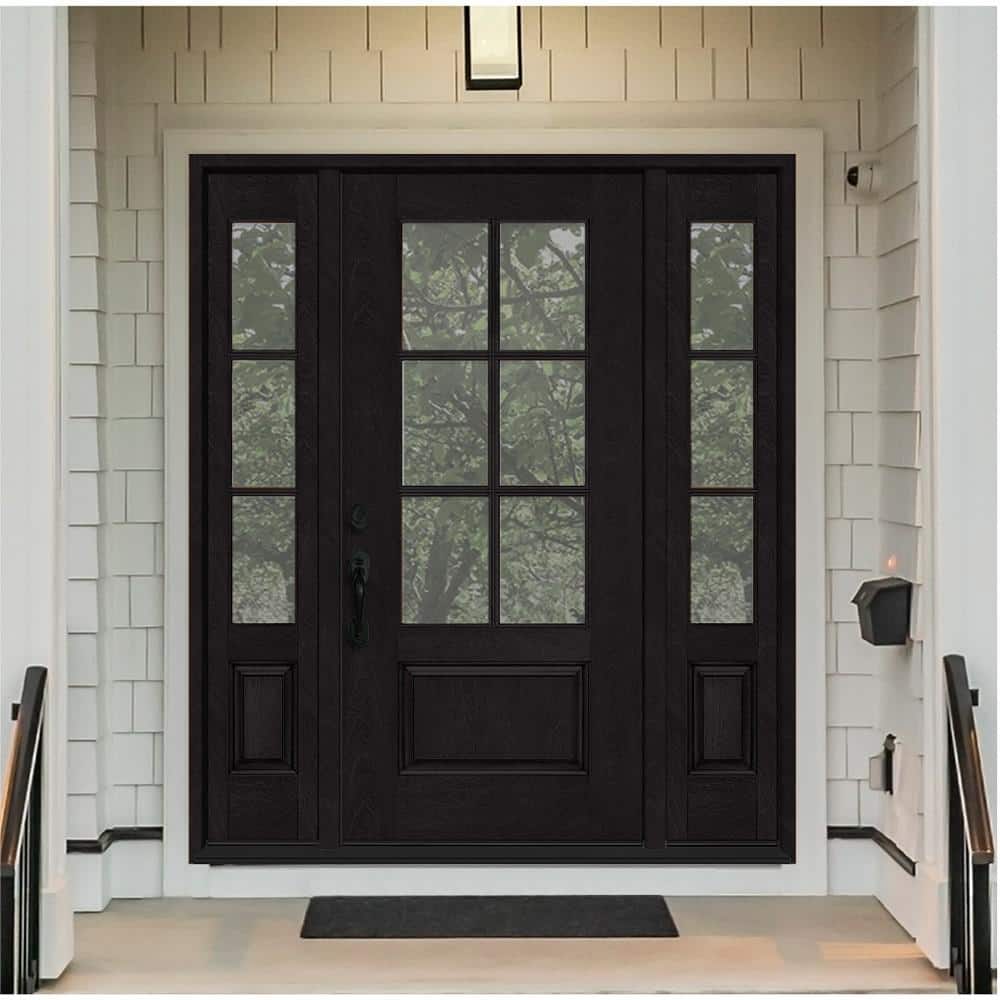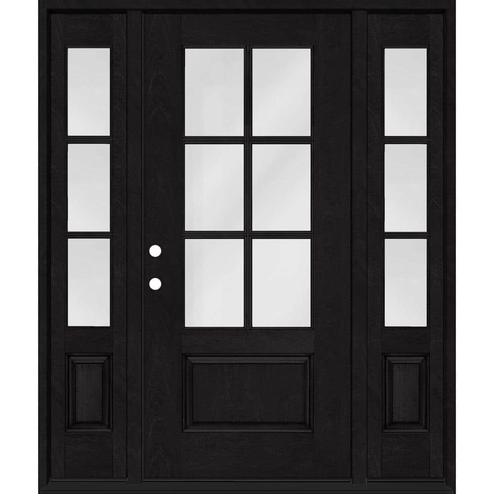 Steves & Sons Regency 64 in. x 80 in. 3/4-6 Lite Clear Glass Right-Hand Inswing Onyx Stain Mahogany Fiberglass Prehung Front Door with Double 12 in. Sidelites