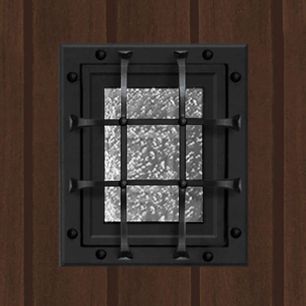 - Old-World Speakeasy Detail: Operable speakeasy with iron grille and rain glass adds rustic charm and privacy