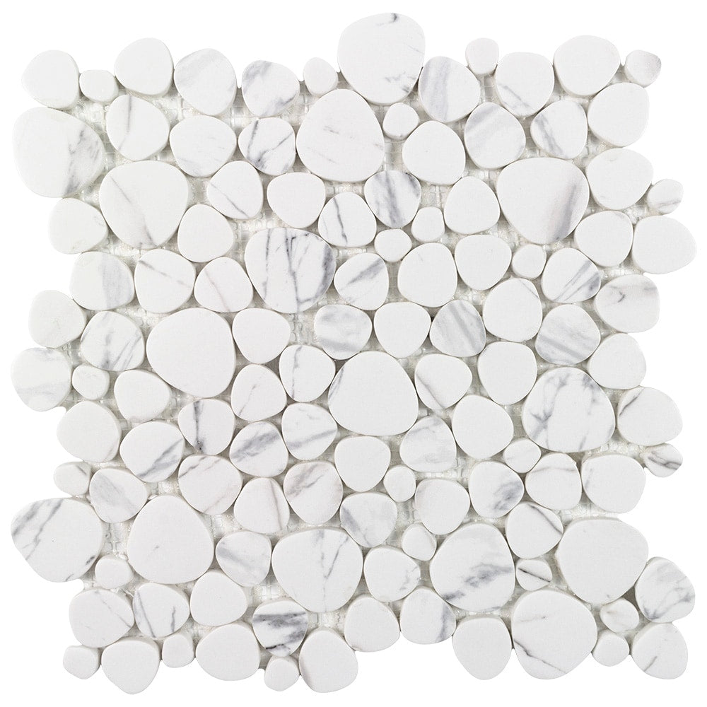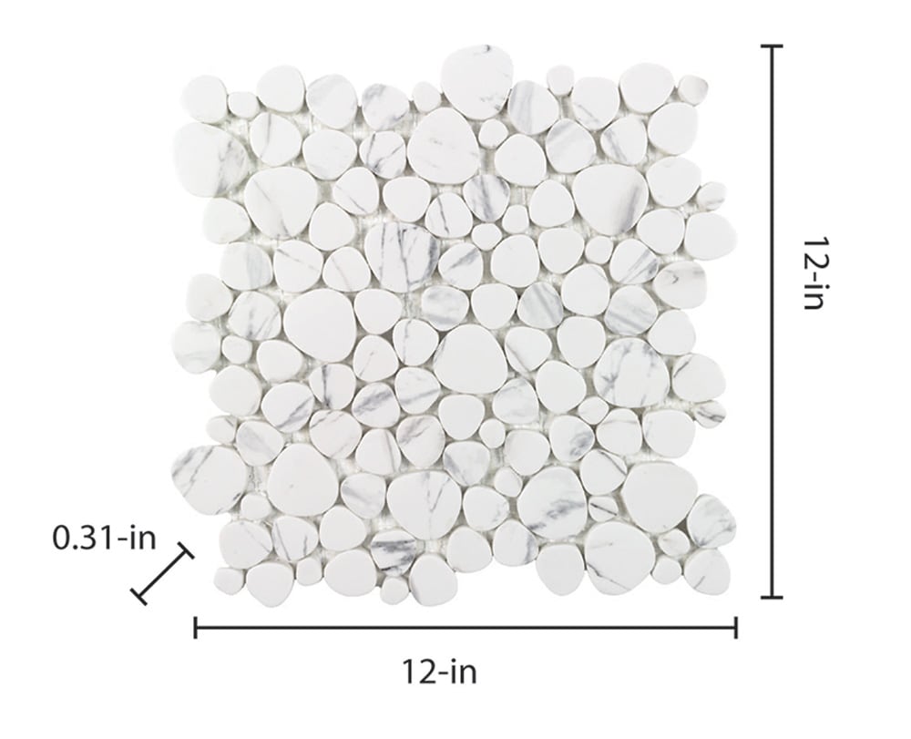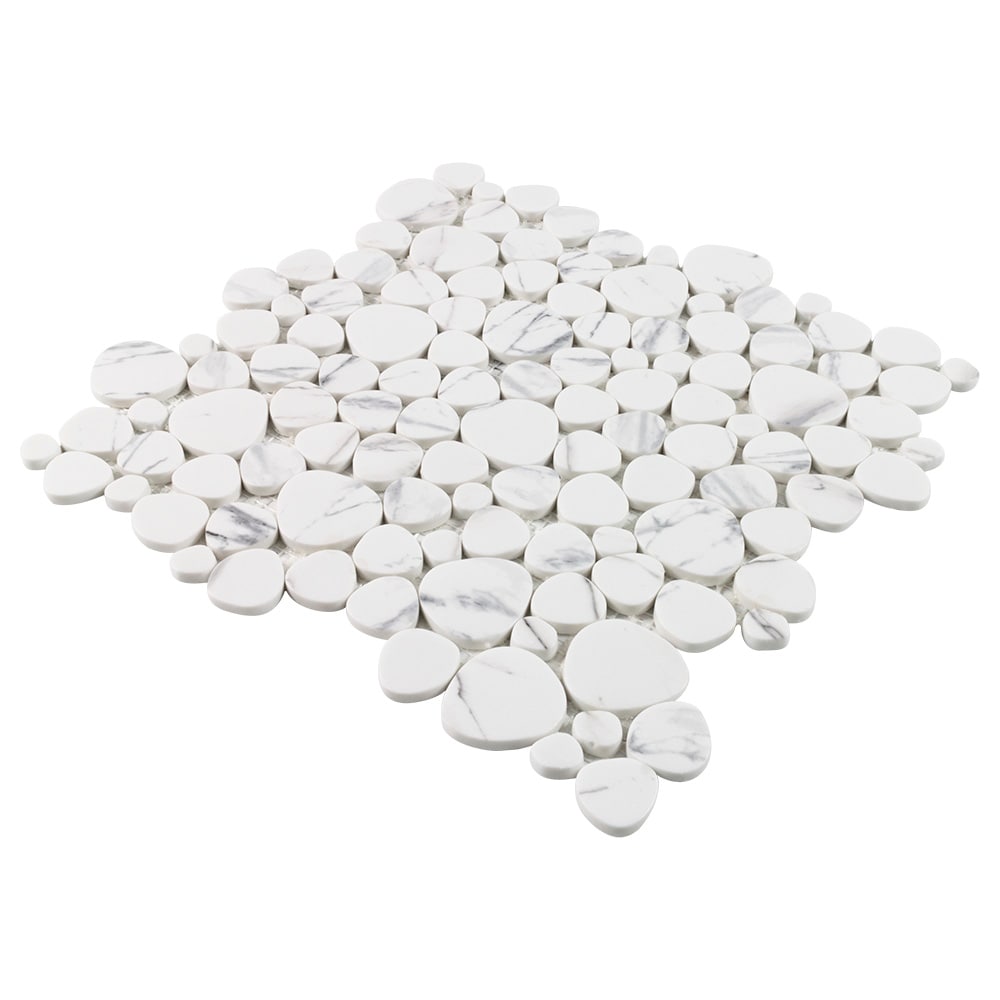 Elida Ceramica Stonescape White Marble 12-in x 12-in Carrara-Look Recycled Glass Pebble Mosaic Floor and Wall Tile (1.001-sq ft per Piece)