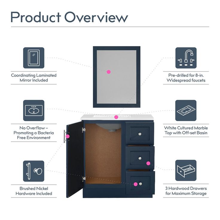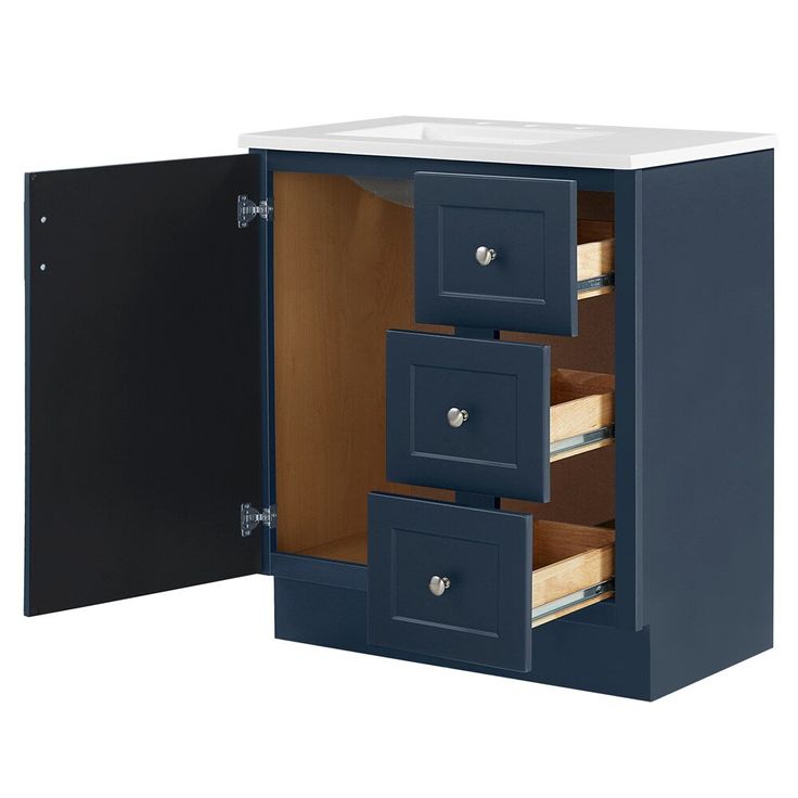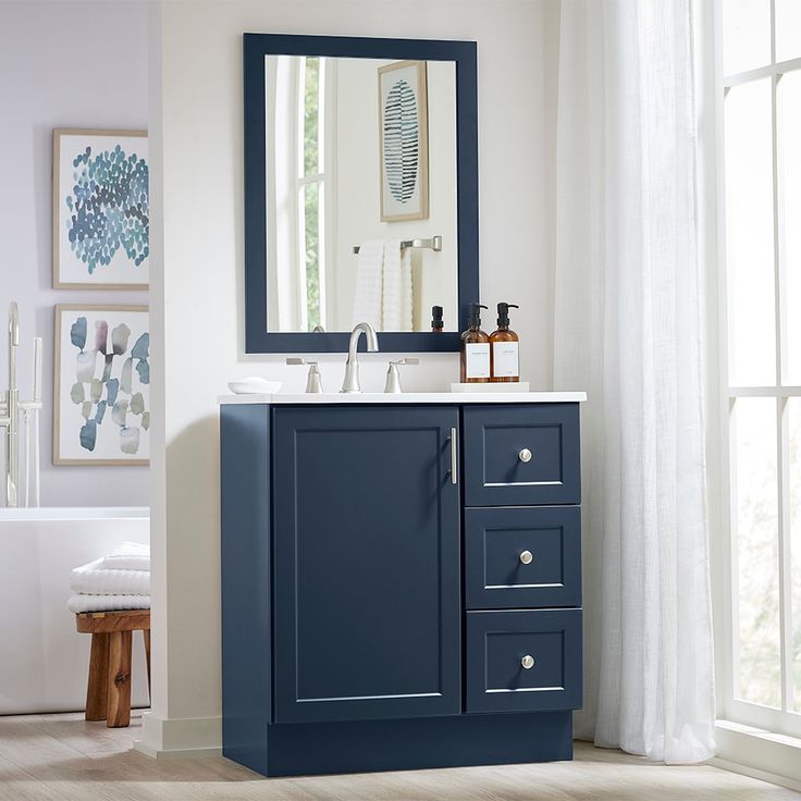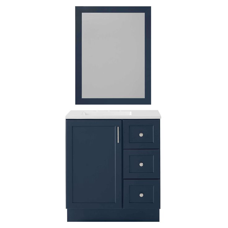 Elevate your bathroom with the Style Selections Davies 30-in Navy Single Sink Bathroom Vanity. Featuring a sleek navy finish and a white cultured marble top, this vanity adds a touch of elegance to any space. The included mirror completes the look and provides functionality. Transform your bathroom into a sophisticated oasis.