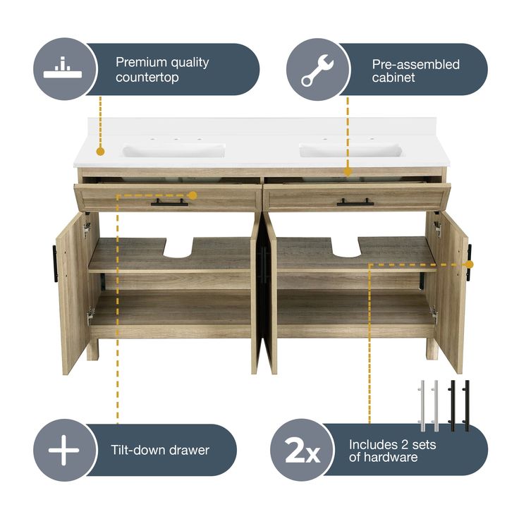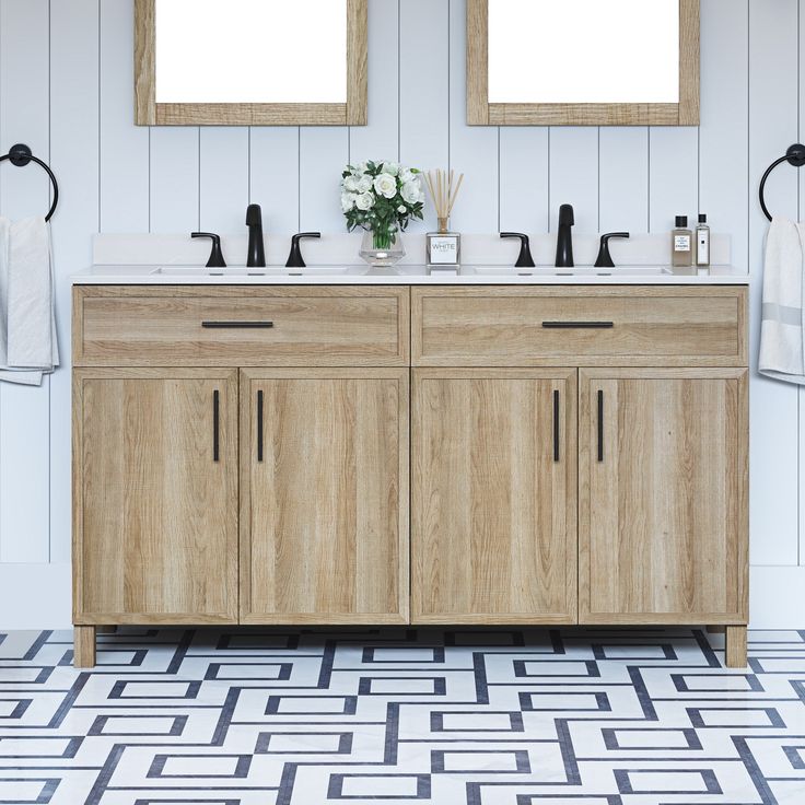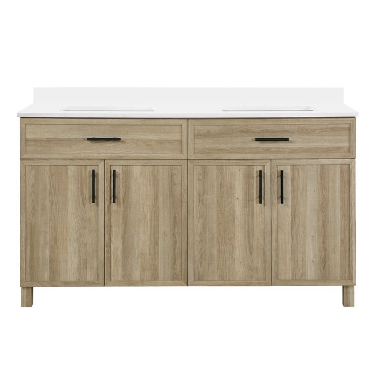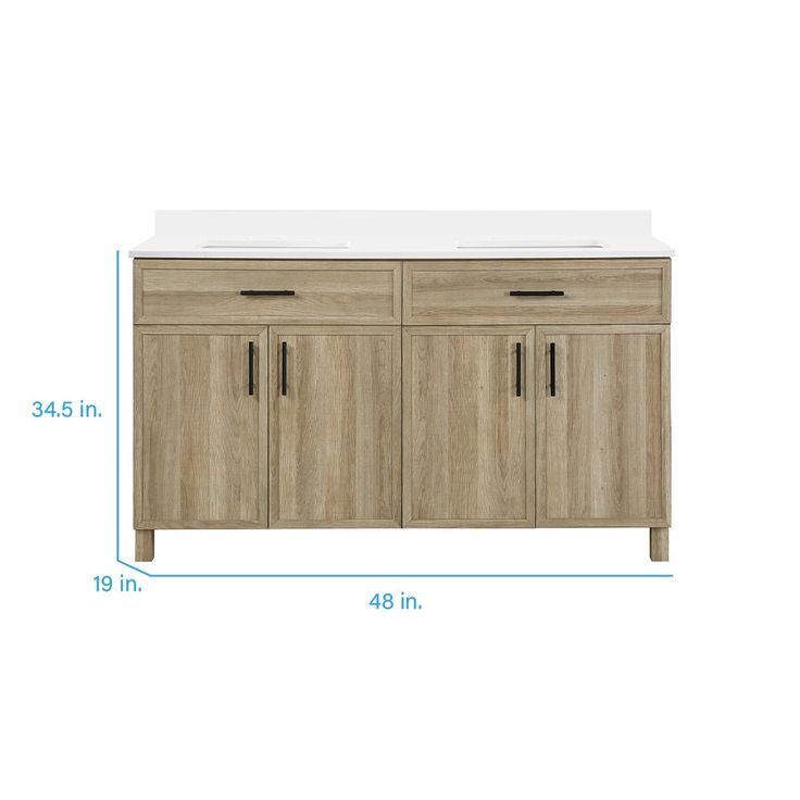 Upgrade your bathroom with the Style Selections Dolton 60-in Natural Oak Double Sink Vanity. The undermount design offers a modern and sleek look while the white engineered stone top provides durability and easy maintenance. With double sinks, this vanity is perfect for busy households.