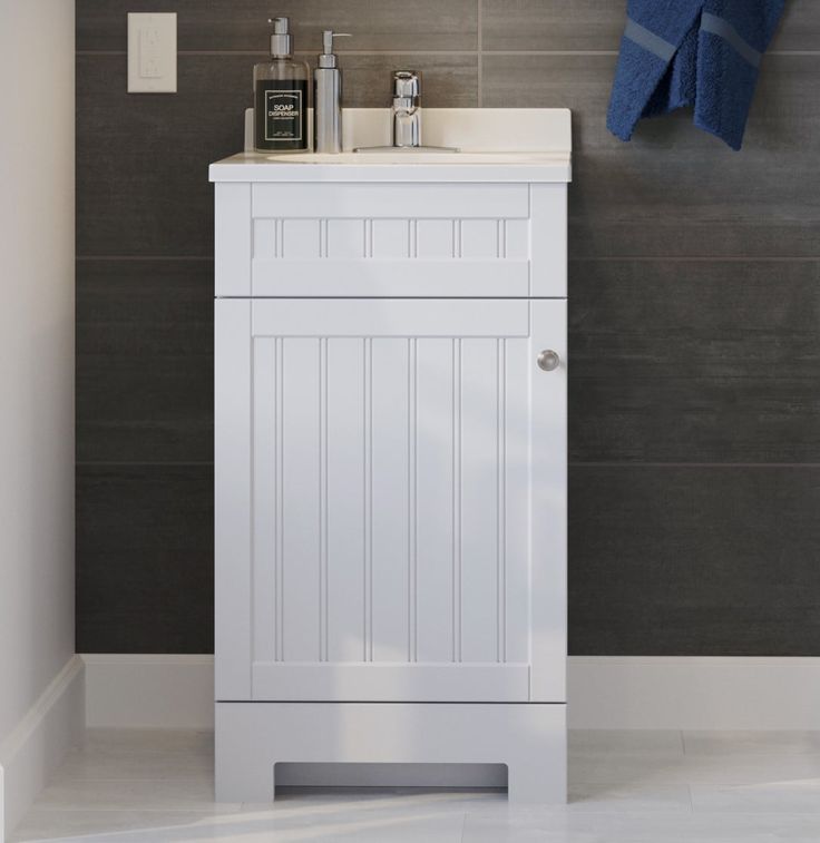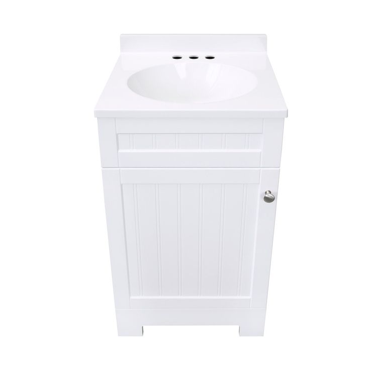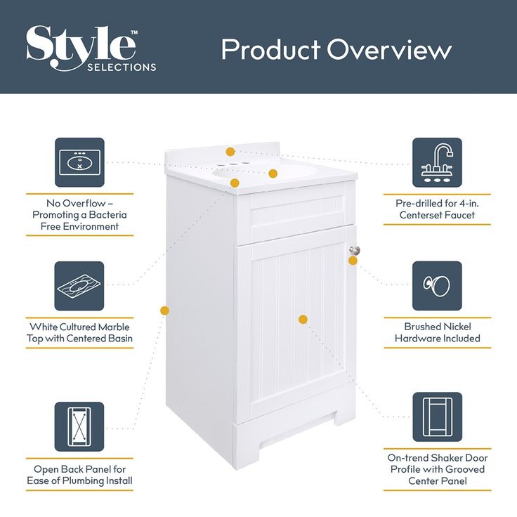 Upgrade your bathroom with the Style Selections Ellenbee 18-in White Single Sink Bathroom Vanity. With a beautiful white cultured marble top and sleek design, this vanity adds a touch of elegance to any space. Made with high-quality materials, it offers durability and functionality while enhancing the overall look of your bathroom.