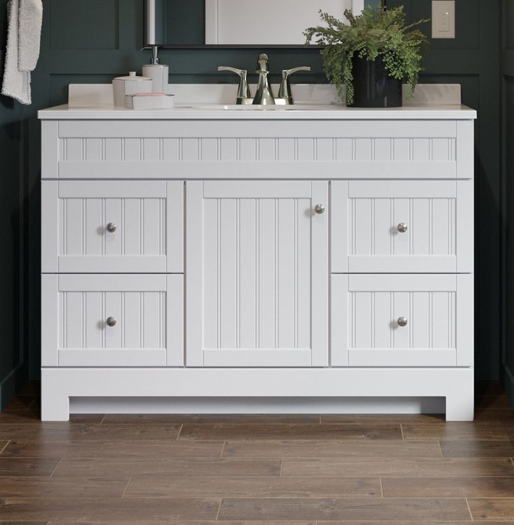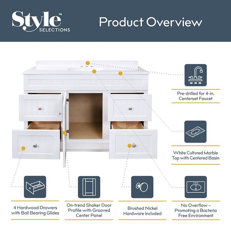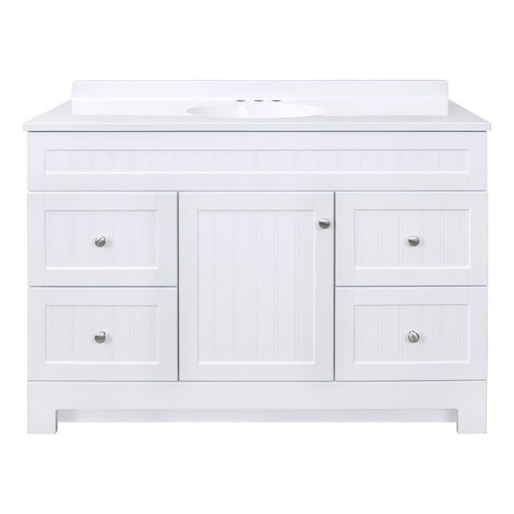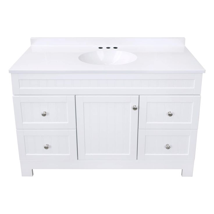 Upgrade your bathroom with the Style Selections Ellenbee 48-in white single sink vanity. The white cultured marble top adds a touch of elegance while the spacious sink provides convenience. With this vanity, you can add both style and functionality to your bathroom space.