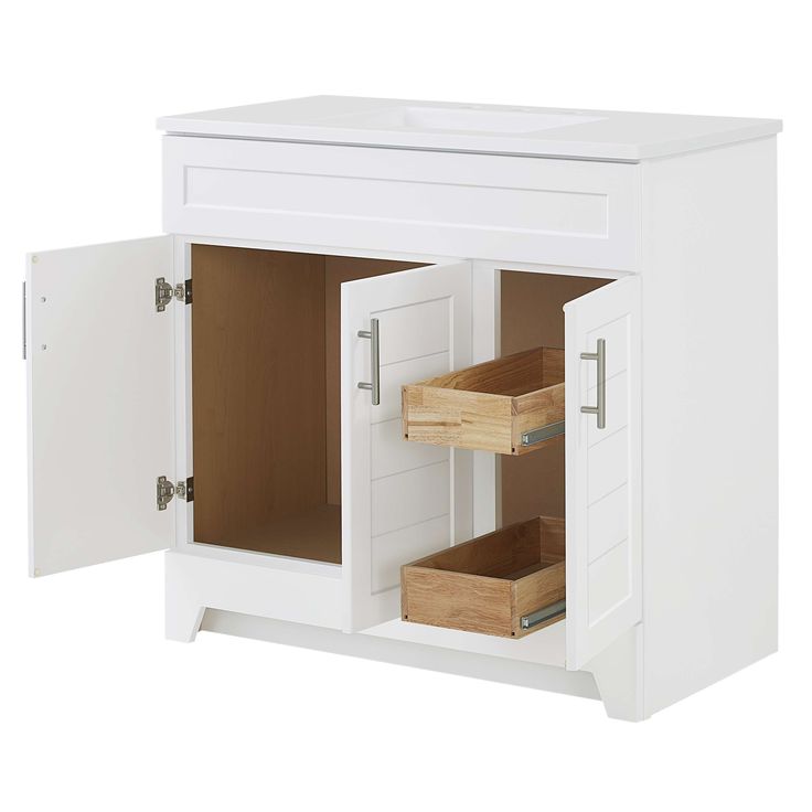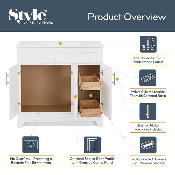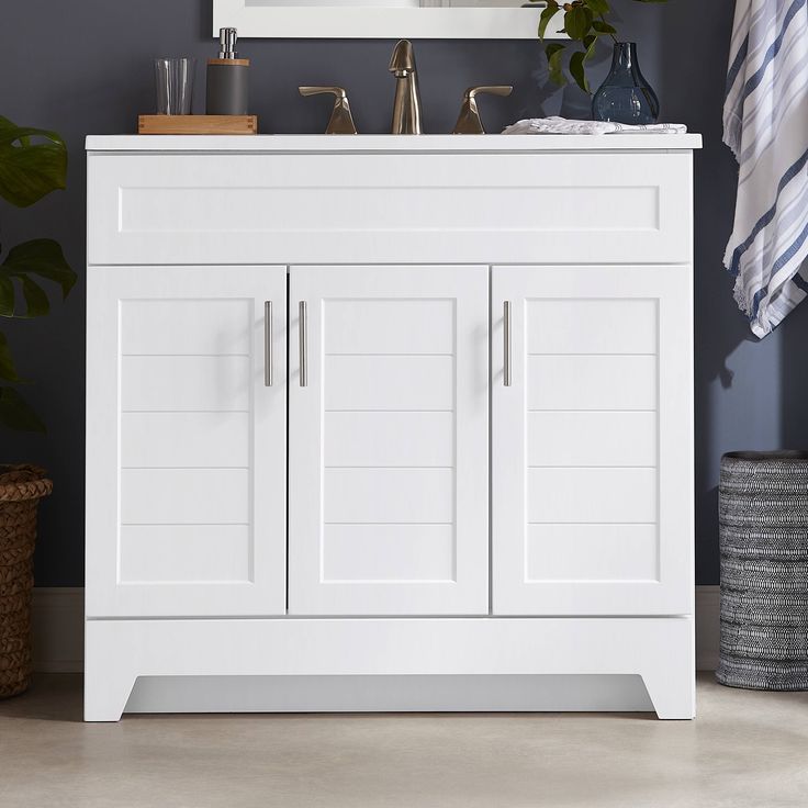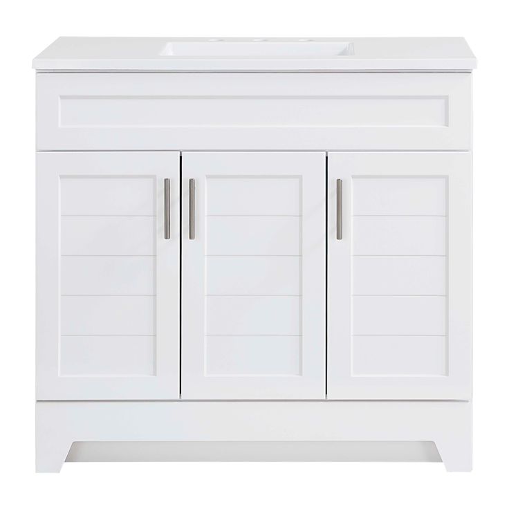 Enhance your bathroom with the sleek and modern Style Selections Kirkman Vanity. The 36-inch white vanity features a single sink and a beautiful white cultured marble top. With its clean lines and elegant design, it's the perfect addition to any bathroom. Upgrade your space with style and functionality.