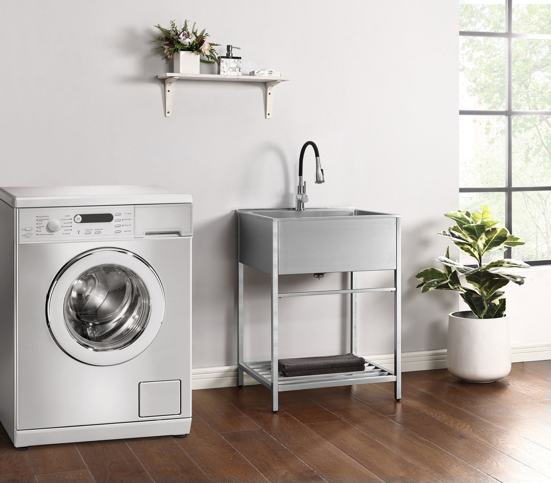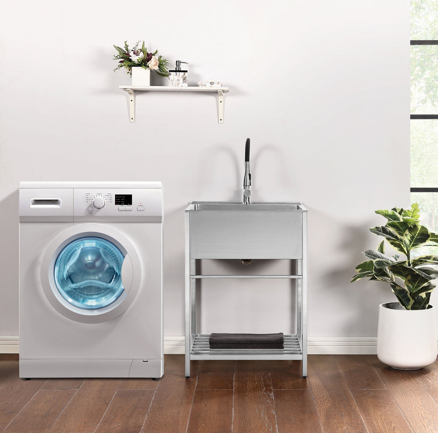 Stainless Steel Freestanding Laundry Sink with Faucet