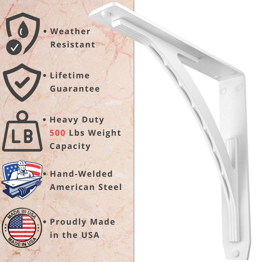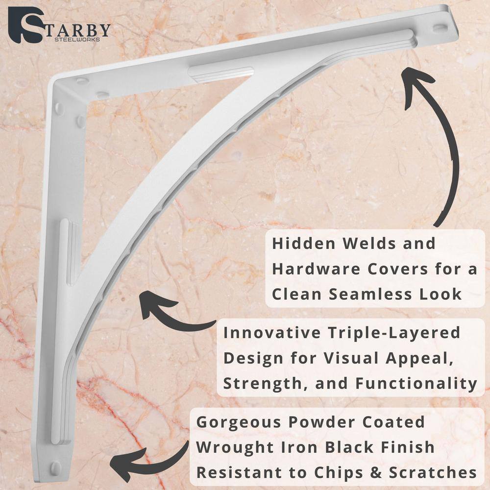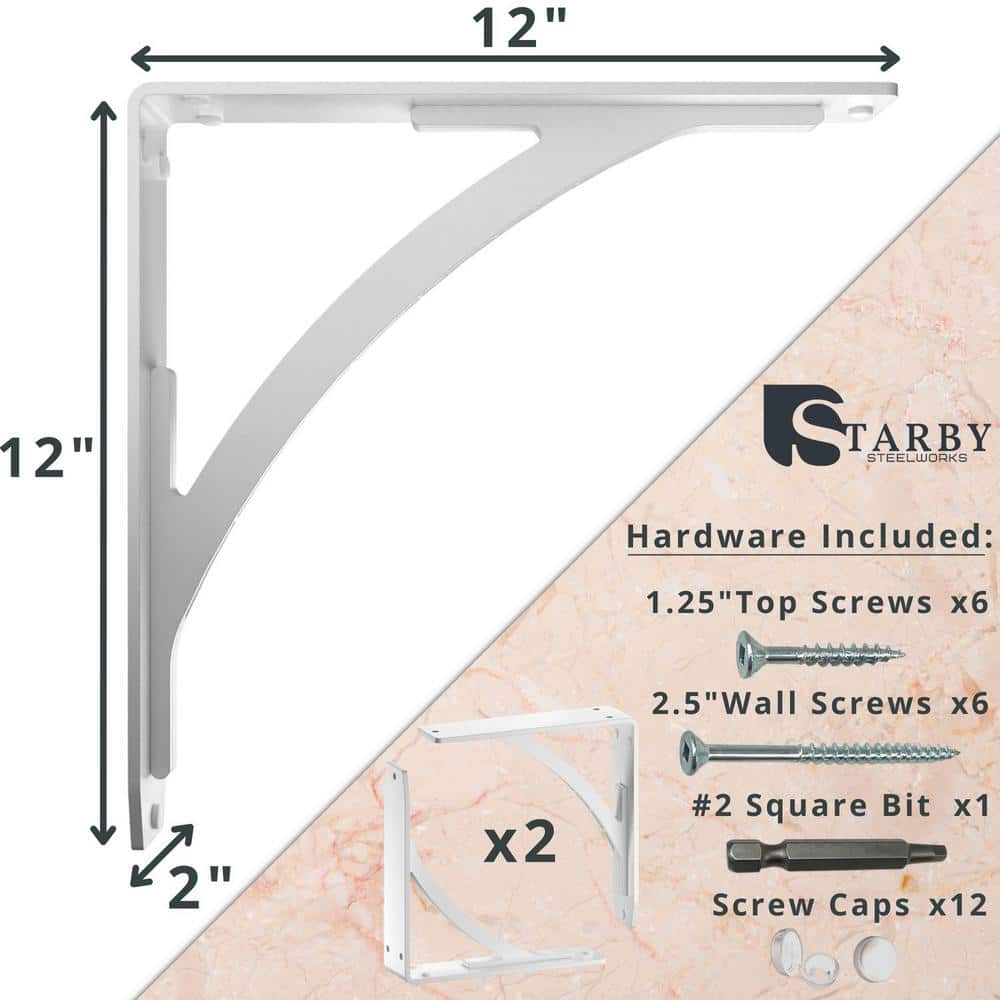 The Sullivan 12 in. White Steel Floating Shelf Bracket by Starby offers unrivaled support and a sleek design for your shelving needs. Built from high-quality, welded American steel, these brackets combine durability and elegance to support over 500 lbs. per pair, making them perfect for heavy-duty applications both indoors and outdoors.