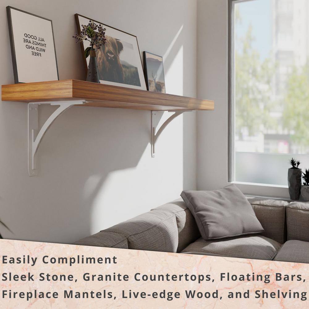 Transform your home into a realm of understated elegance with the Sullivan 12 in. White Steel Floating Shelf Bracket. These brackets not only provide structural integrity but their hidden welds and striking stacked design add an artistic flair to any setting. Imagine these eye-catching supports under a sleek stone mantel or blending seamlessly with a rustic wooden shelf. In embracing the balance between form and function, this bracket becomes the backdrop of your everyday masterpieces, making it essential for an inspiring and luxurious living space.