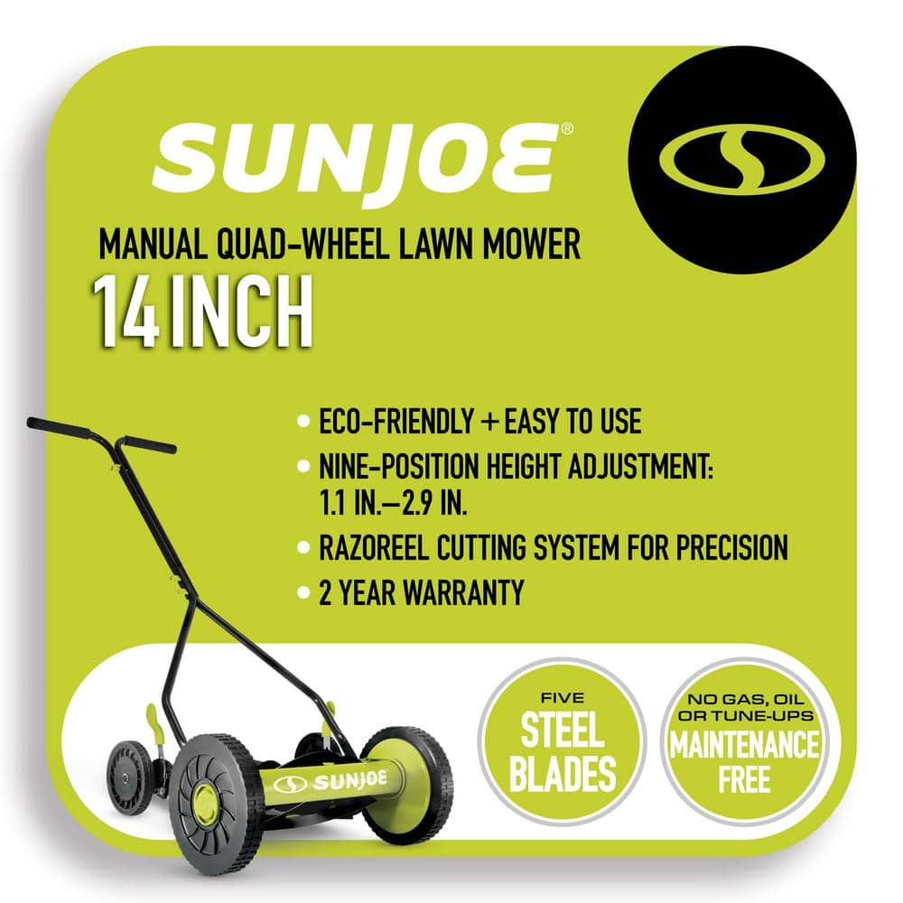 Sun Joe 14 in. Classic Quad Wheel 9-Position Manual Walk-Behind Reel Mower