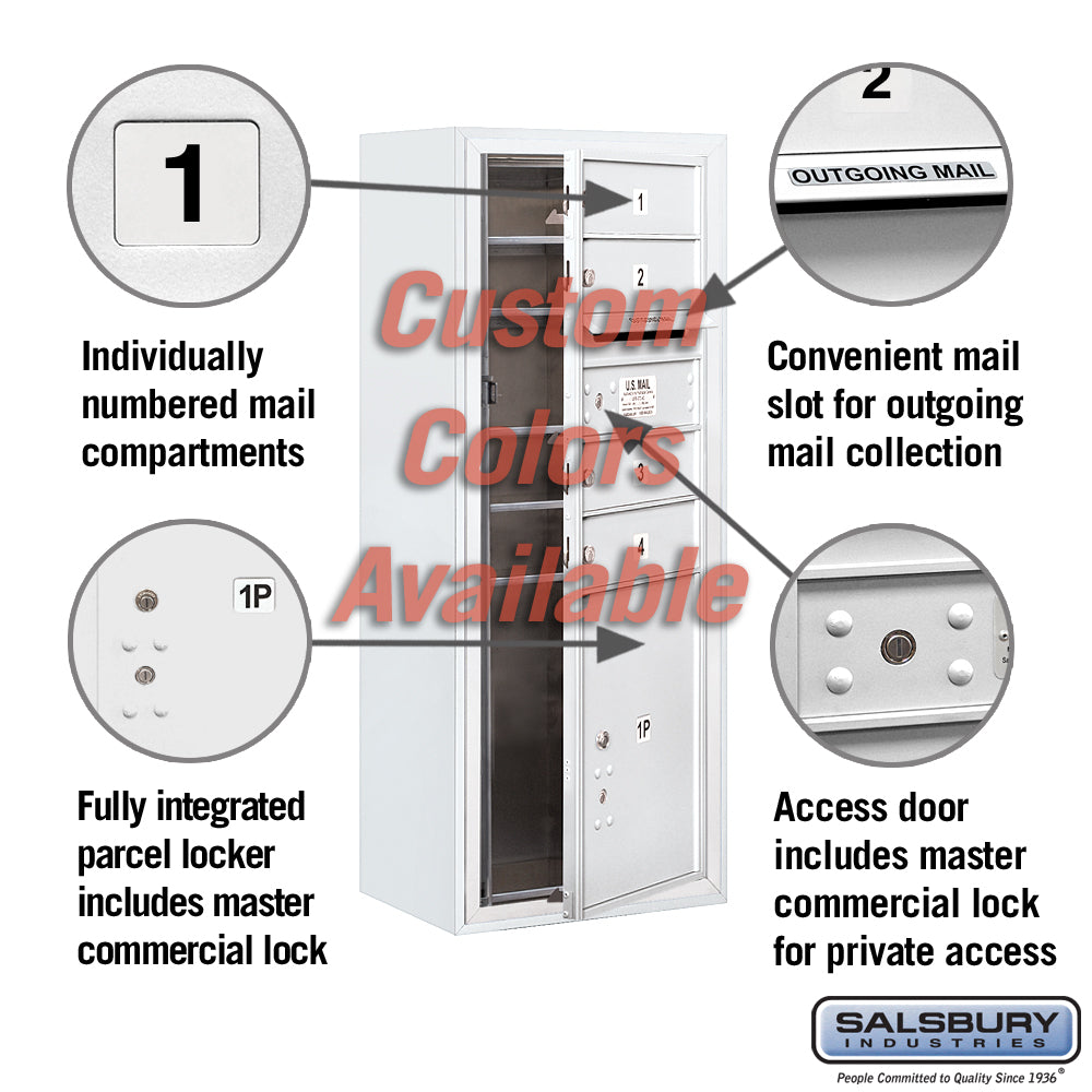 | Parcel Locker Sizes | PL3 (10-1/4" H), PL4 (13-3/4" H), PL4.5 (15-1/2" H), PL5 (17-1/4" H), PL6 (20-3/4" H) |