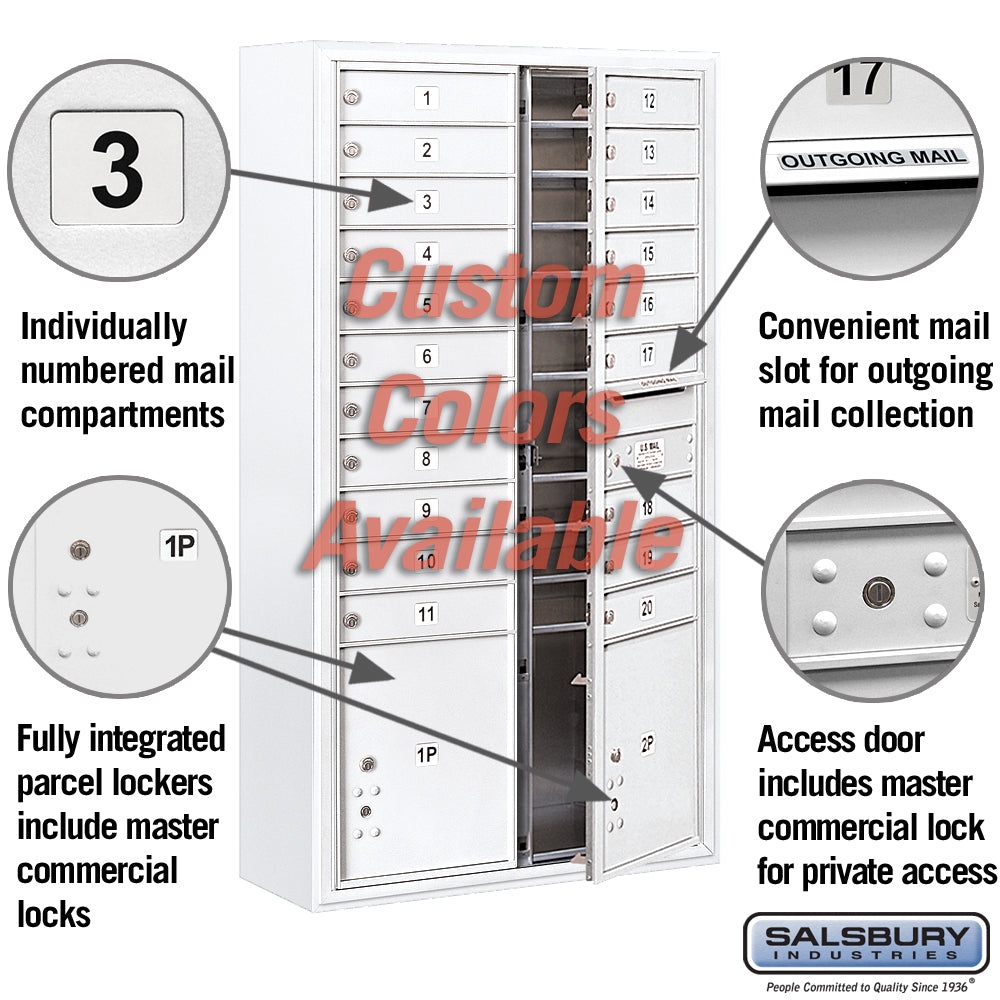 | Outgoing Mail Compartment | Includes master commercial lock access door and mail slot with weather protection hood |