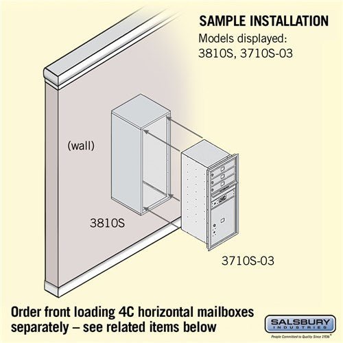 | Compatibility | Designed to mount Salsbury 3700 Series front loading 4C standard and custom horizontal mailboxes |