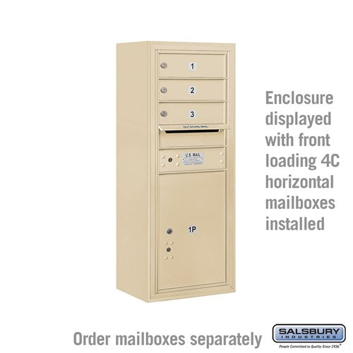 A: This enclosure is designed to mount Salsbury 3700 Series front loading 4C standard and custom horizontal mailboxes.