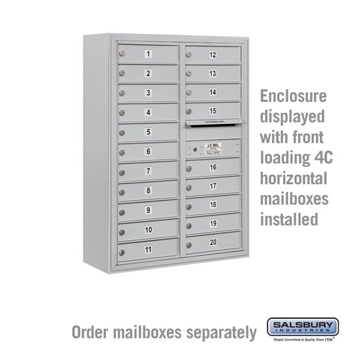 A: This enclosure is designed to fit Salsbury 3700 Series front loading 4C standard and custom horizontal mailboxes.