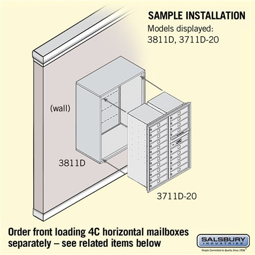 Compatibility Designed to mount Salsbury 3700 Series front loading 4C standard and custom horizontal mailboxes