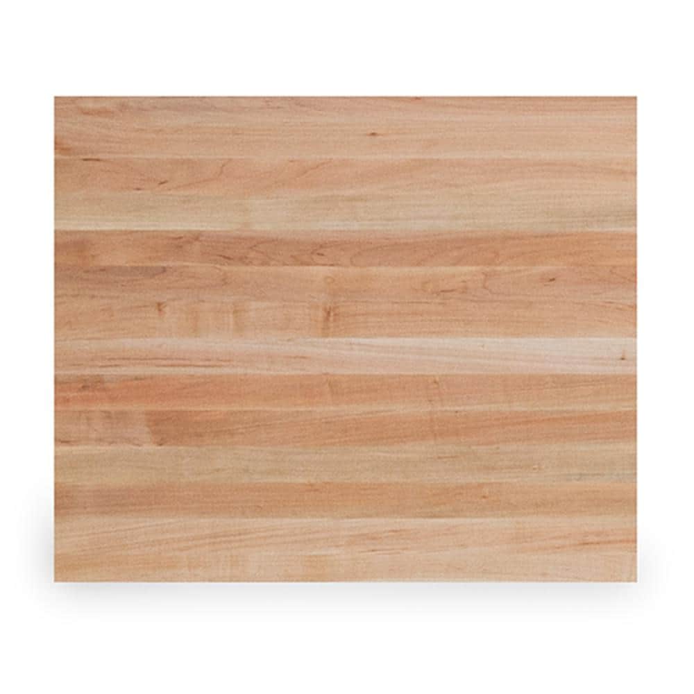 Transform your kitchen or workspace with the Swaner Hardwood Finished Maple Butcher Block Countertop. Expertly crafted with domestic solid maple, this countertop offers both beauty and durability. The non-toxic, semi-gloss polyurethane finish ensures a welcoming surface safe for food preparation.