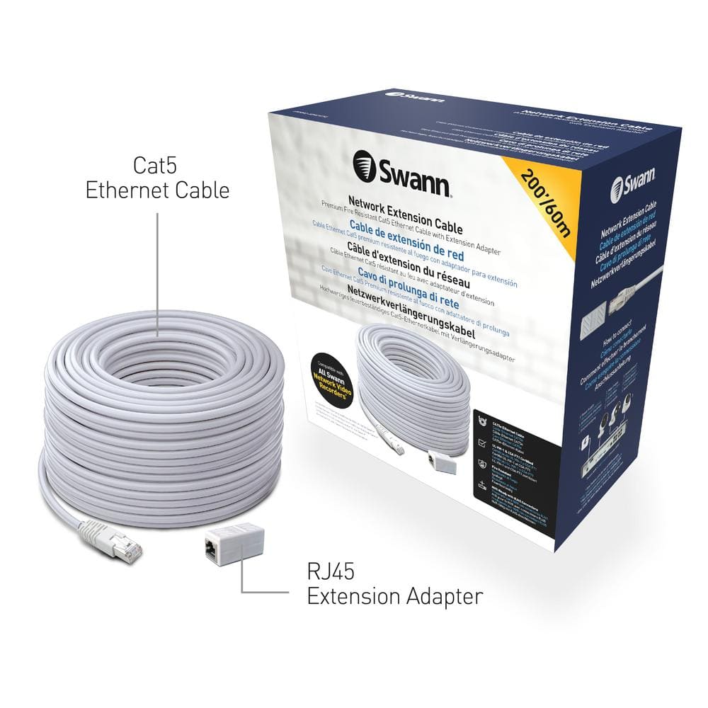 Swann 200 ft./60 m Cat5 Ethernet Cable, NVR Extension Cord for PoE Security Camera