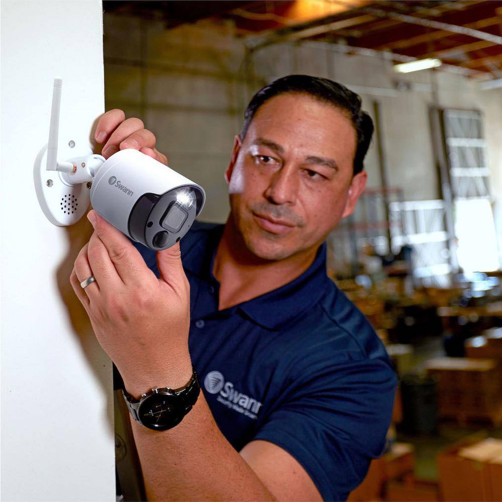 Safeguard your home or business with Swann's advanced 8-Channel 1080p NVR Security Camera System, featuring superior night vision and True Detect technology for reliable surveillance. This comprehensive system includes four robust WiFi bullet cameras and provides expansive storage with a 1TB hard drive. With remote operation via the Swann Security app, you can monitor your property from anywhere and deter intruders with intelligent features like motion-activated spotlights and two-way audio.