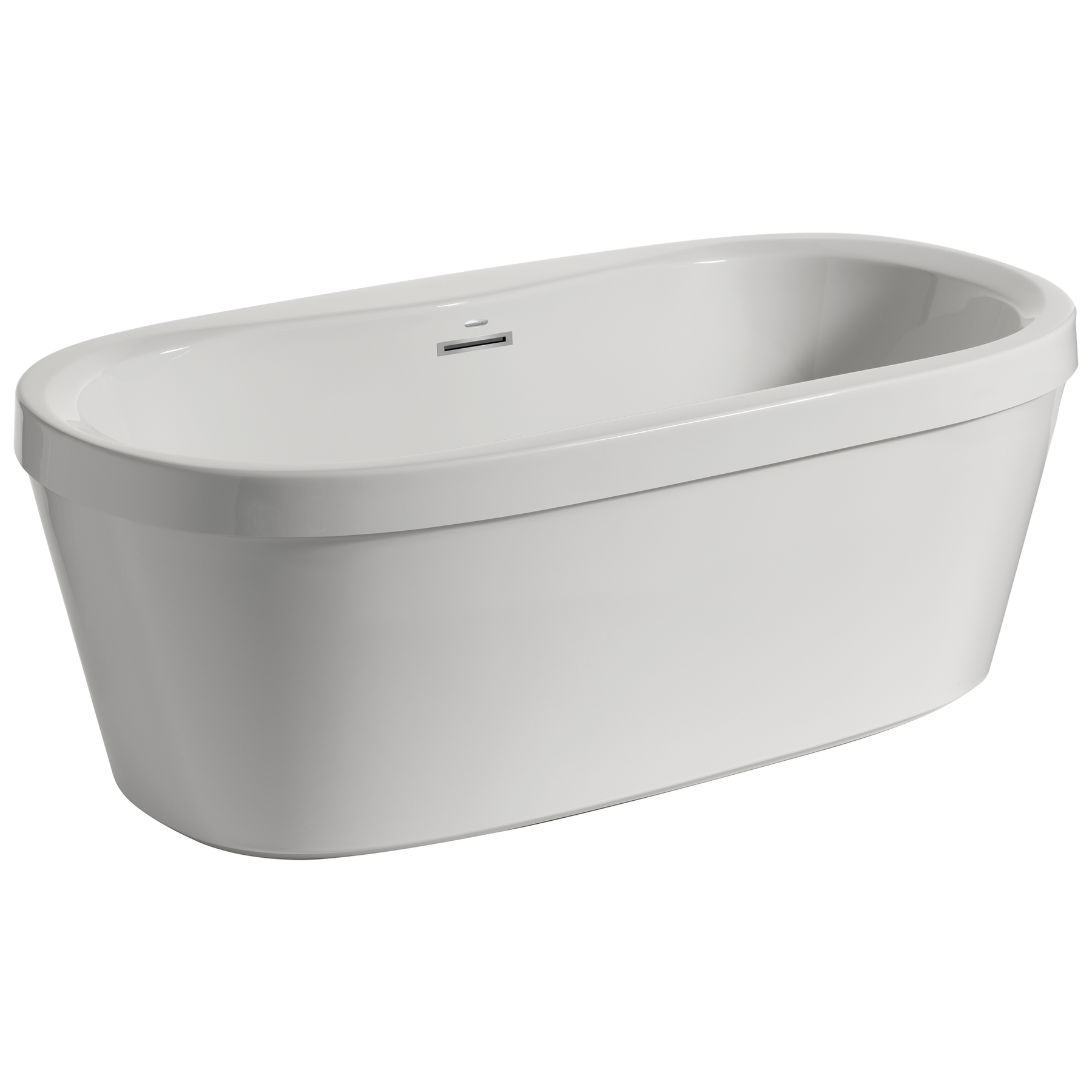 Enjoy a deep, relaxing soak in the Delta Synergy freestanding bathtub. Lightweight acrylic construction with integrated overflow and waste simplifies installation and maintenance while delivering a sleek, high-gloss white finish. Center drain layout and contoured sides offer comfortable bathing in modern spaces.