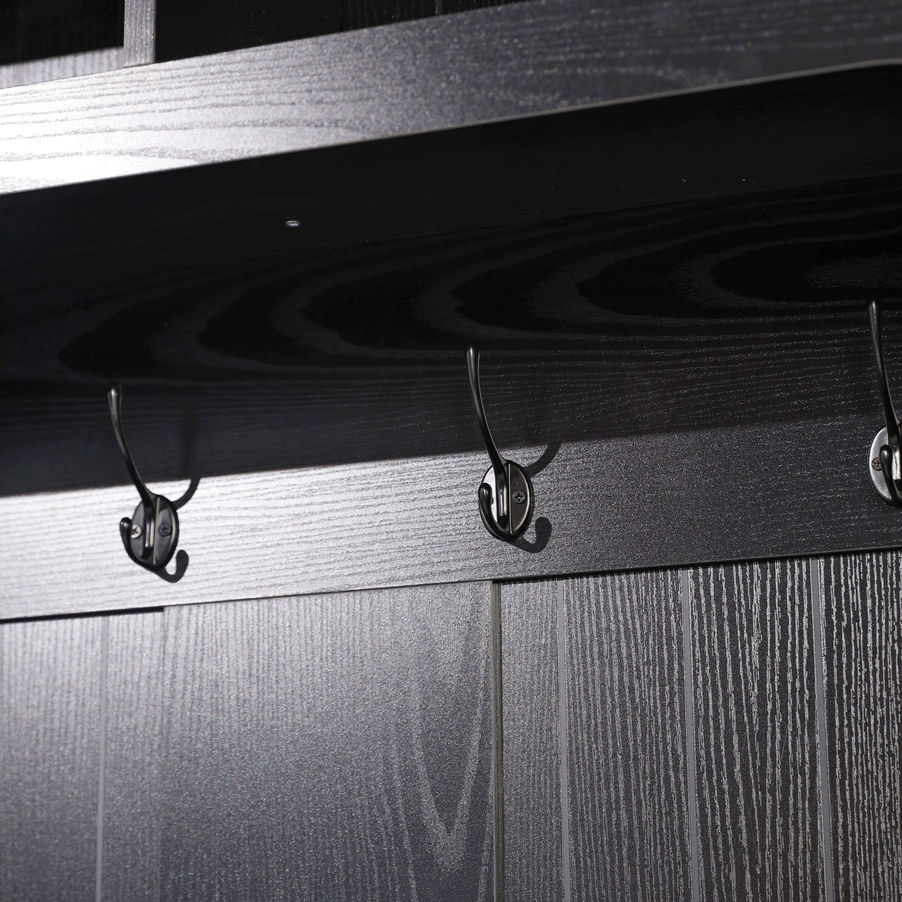 Sturdy Build: Constructed from robust composite materials, supporting up to 200 lbs on the bench and 20 lbs per hook/cubby.