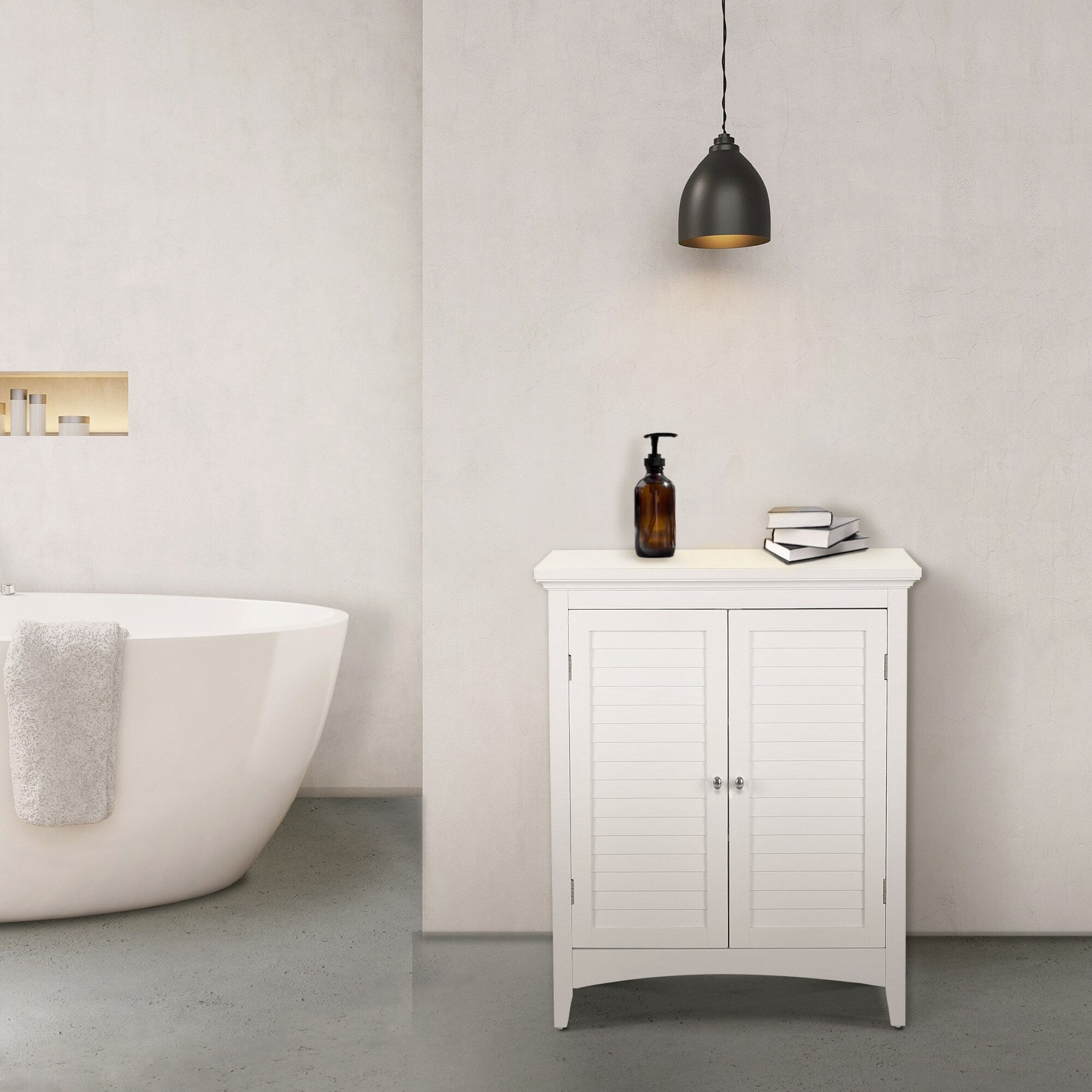Upgrade your storage solutions with the Teamson Home Glancy Freestanding Linen Cabinet, crafted to bring both style and organization to your home. With a clean white finish and elegant crown molding, this cabinet is as versatile as it is graceful, efficiently utilizing small spaces for maximum storage.