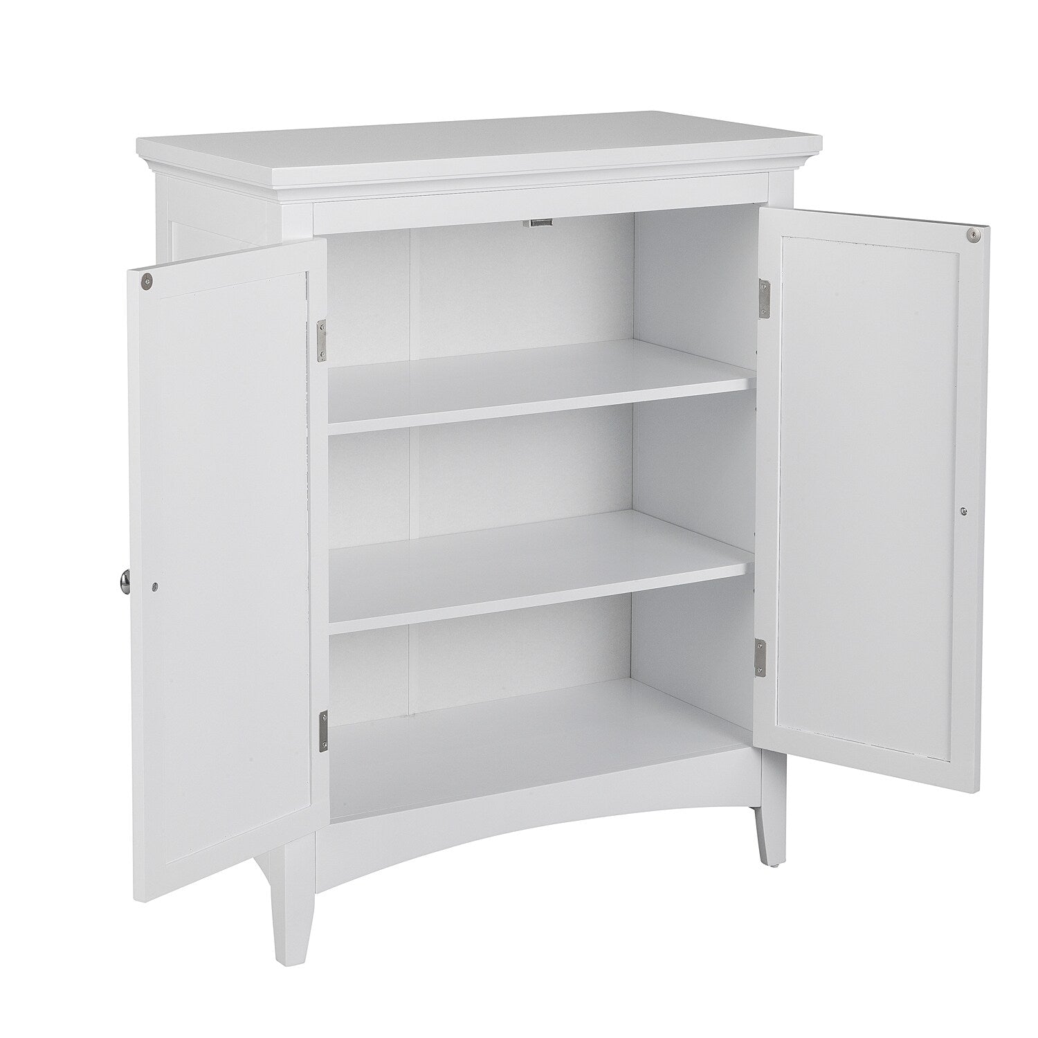Q: Can the shelves be adjusted? A: Yes, the cabinet includes two shelves, one of which is adjustable to accommodate various storage needs.