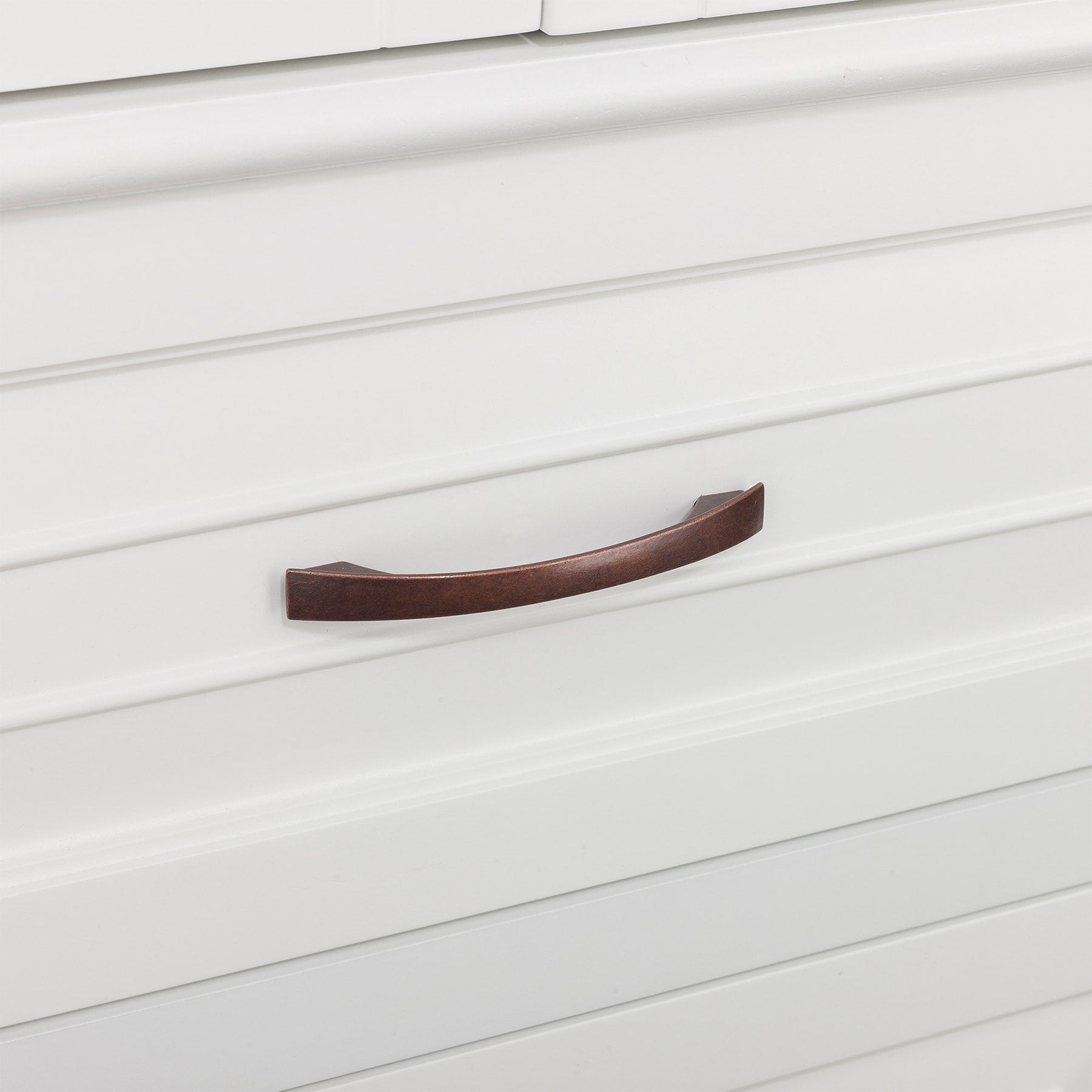 Contemporary Design: Smooth white finish paired with brushed bronze handles for a clean look.