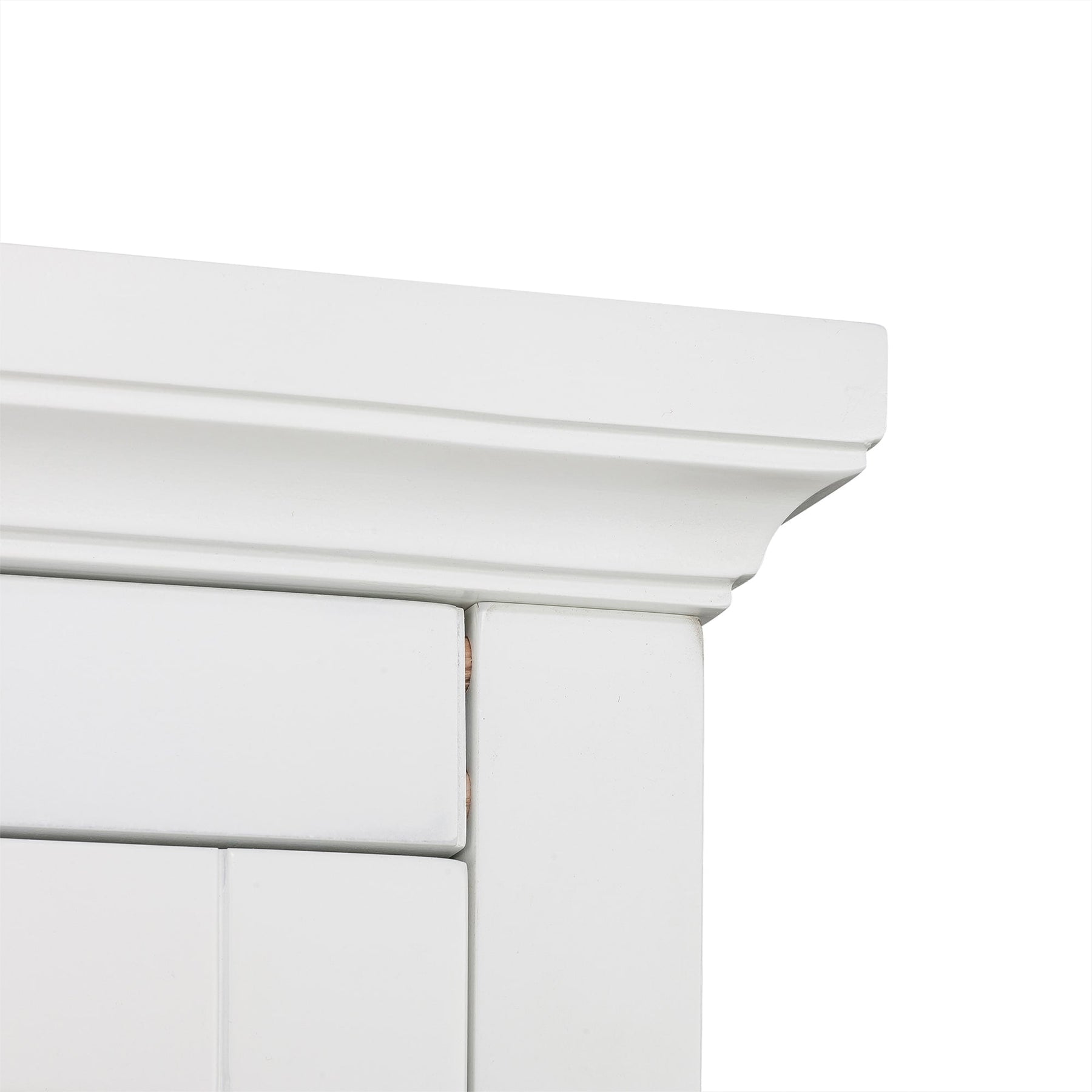 Q: What is the best way to style this linen cabinet in a room? A: The minimalist design with its white finish complements modern décor styles; it can be paired with subtle decorative elements like indoor plants or simple vases for aesthetic appeal.