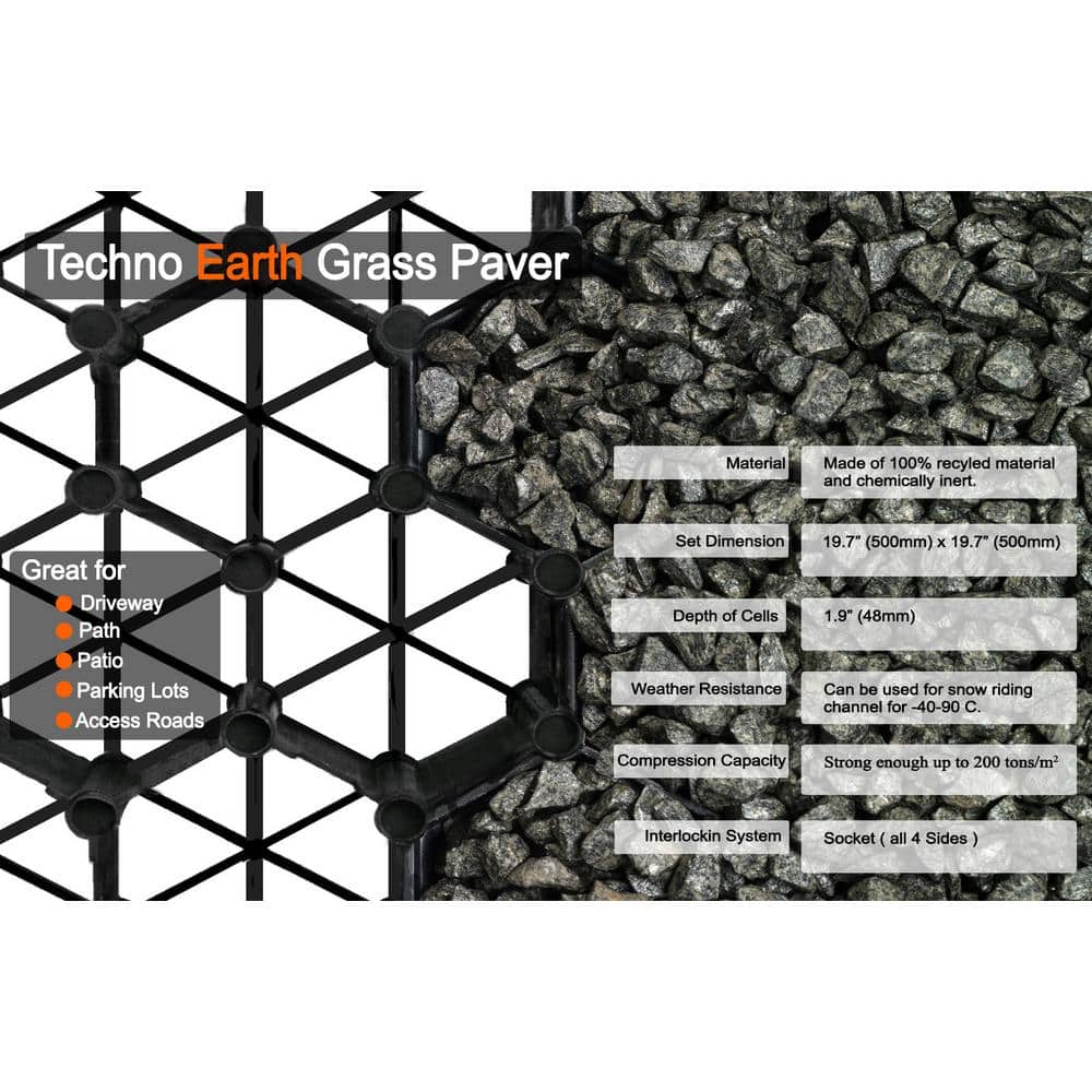 Techno Earth 19.7 in. x 19.7 in. x 1.9 in. Black Permeable Plastic Grass Pavers for Parking Lots, Driveways (4 Pieces/11 sq.ft.)
