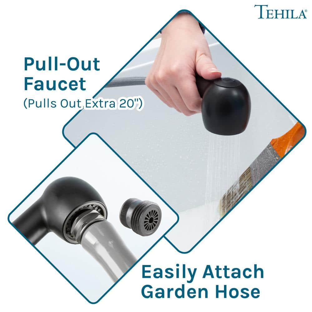 User-Friendly Faucet: Pull-out sprayer with dual functionality for convenience.