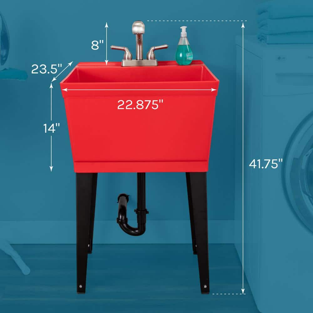 Upgrade your laundry room or workspace with the TEHILA Freestanding Red Utility Sink. This 19-gallon capacity thermoplastic sink adds a vibrant pop of color while delivering top-tier performance with its stain-resistant surface and dual-function faucet setup. Complete with durable steel legs and levelers, it's designed for effortless DIY installation and versatility.