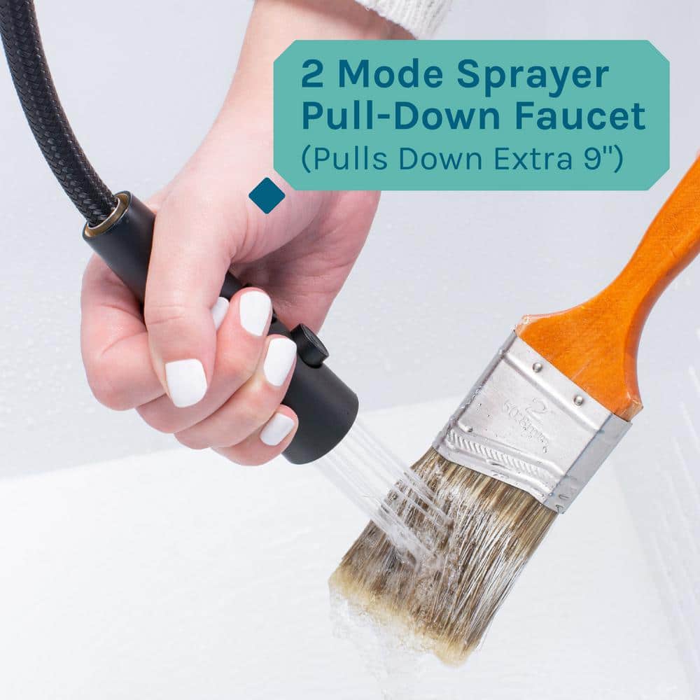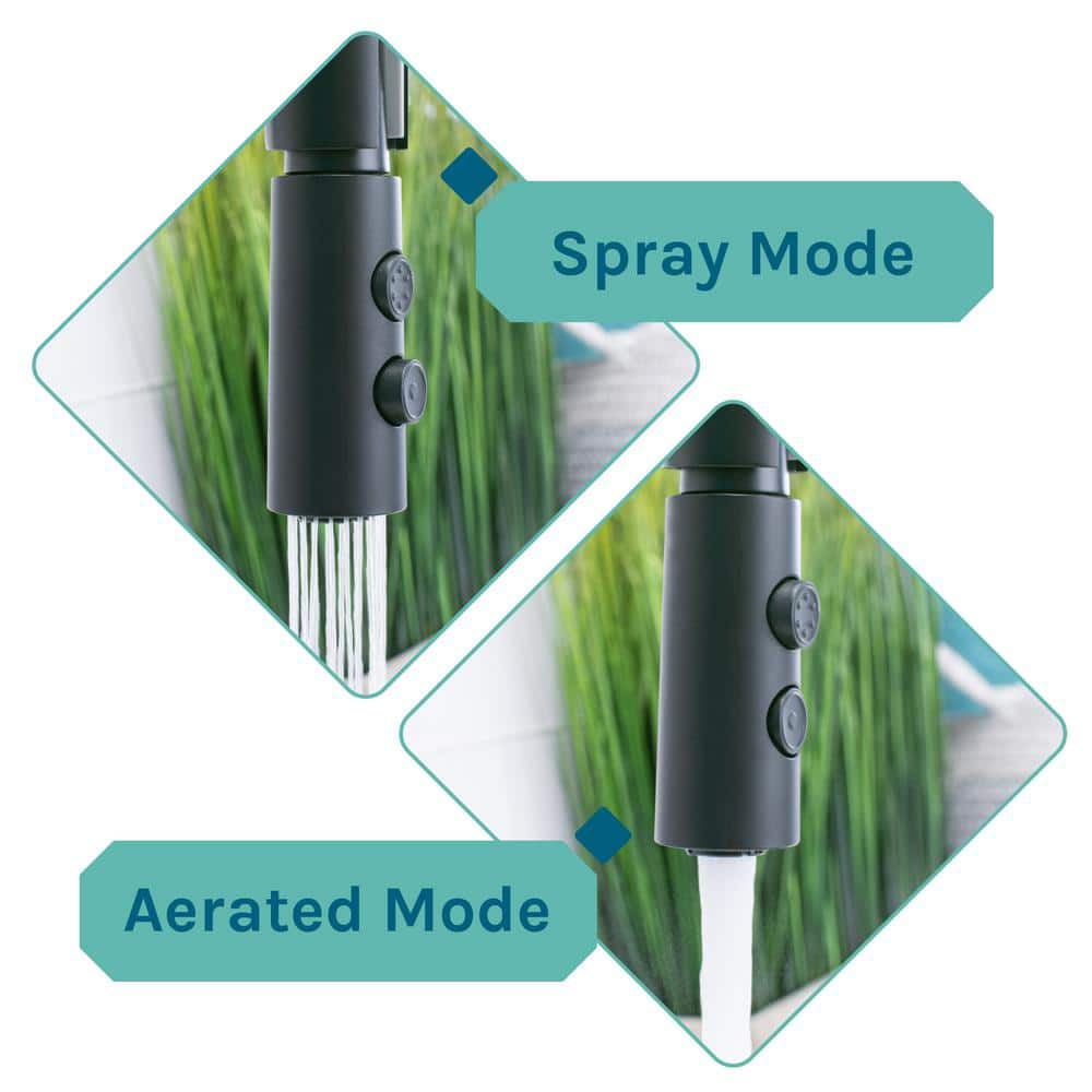 Stylish Faucet Design: Includes a matte black, high-arc coil faucet that seamlessly transitions between spray and aerated water.