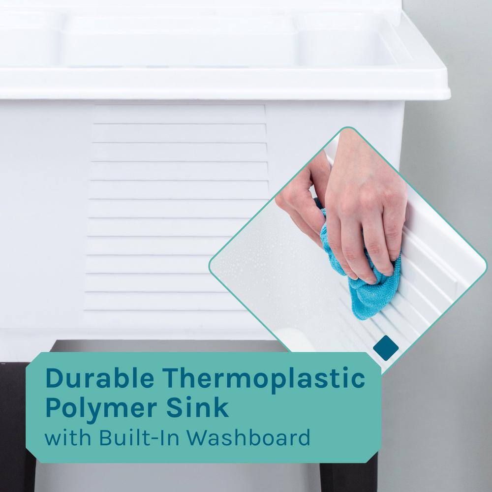 Generous Capacity: 18-gallon sink with built-in washboard for tackling tough stains.