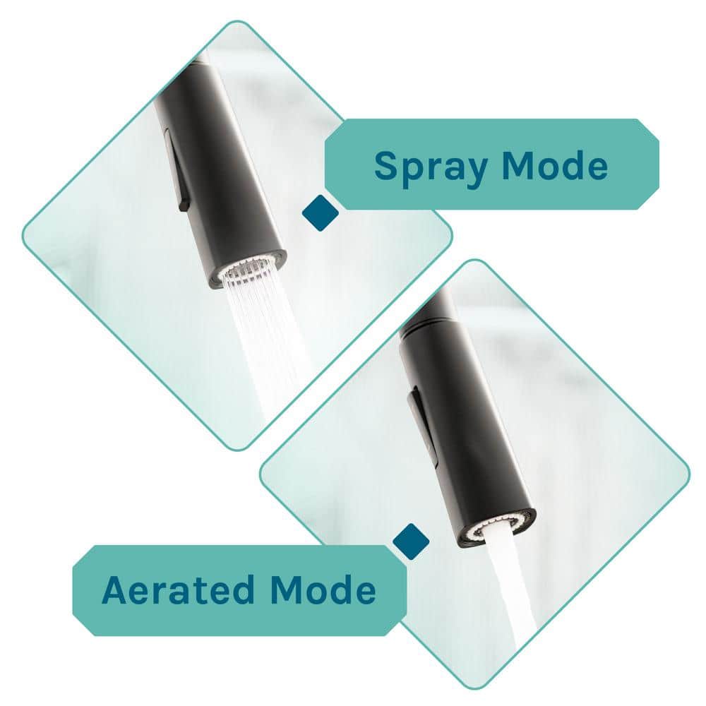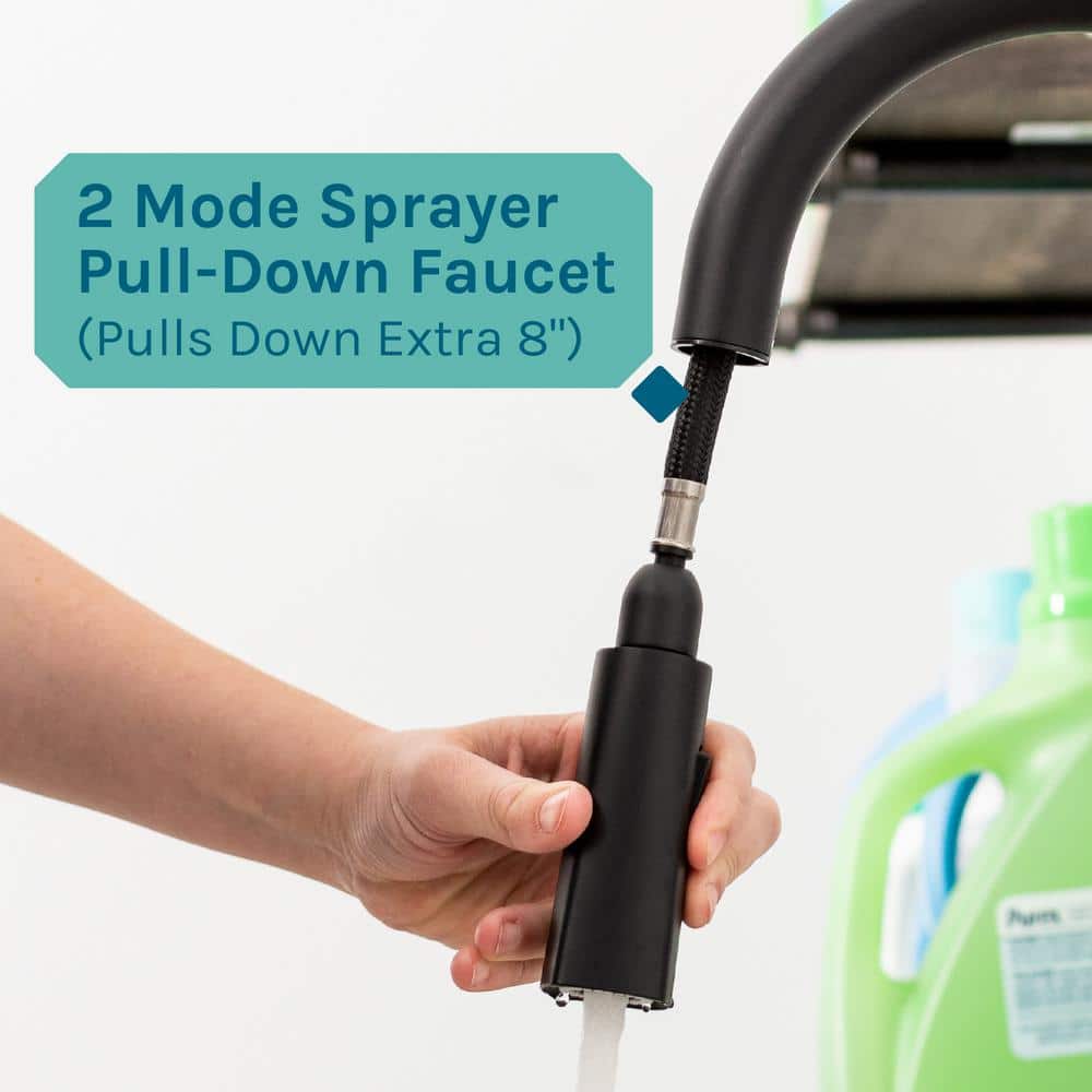 Q: How does the pull-down sprayer function? A: The high-arc faucet offers dual-functionality, switching between a spray and stream mode with ease.