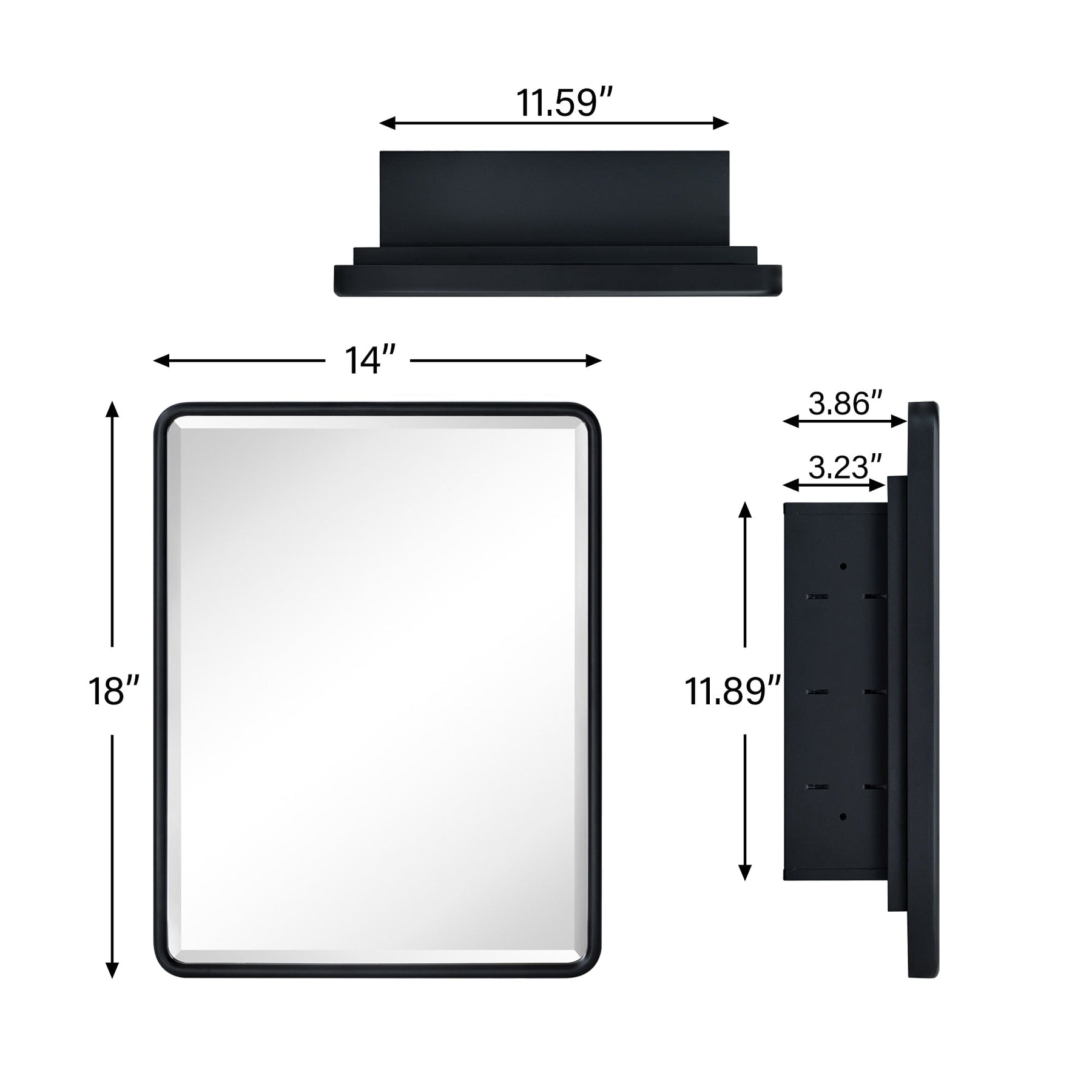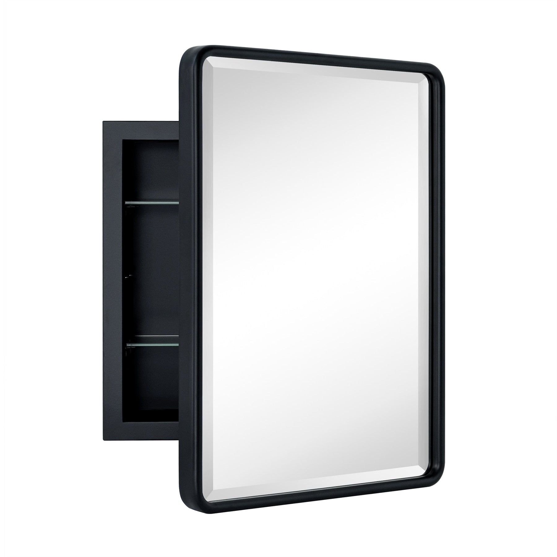 TEHOME 14-in x 18-in Recessed Mount Matt Black Mirrored Medicine Cabinet